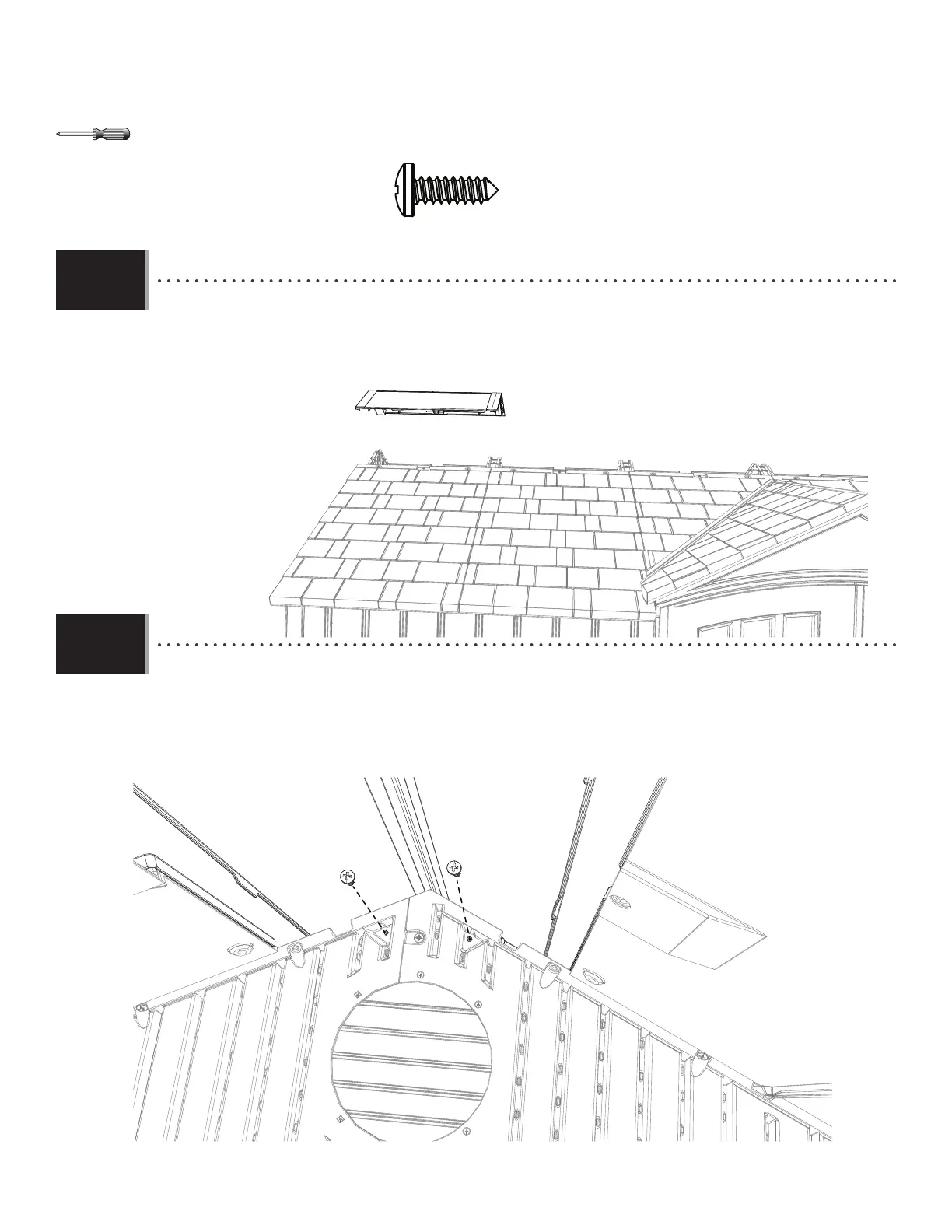 • Mettre le puits de lumière sur l’extrémité du toit. Fixer le capuchon sur le toit à pignon. L’extrémité du