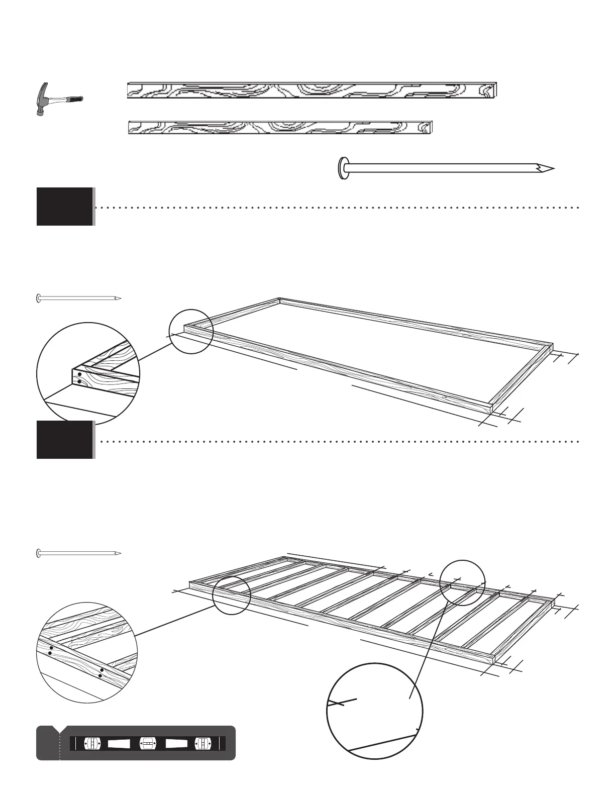 • Vérifi er que votre bois d’œuvre à été traité et approuvé pour l’utilisation à l’extérieur. Construire un cadre de