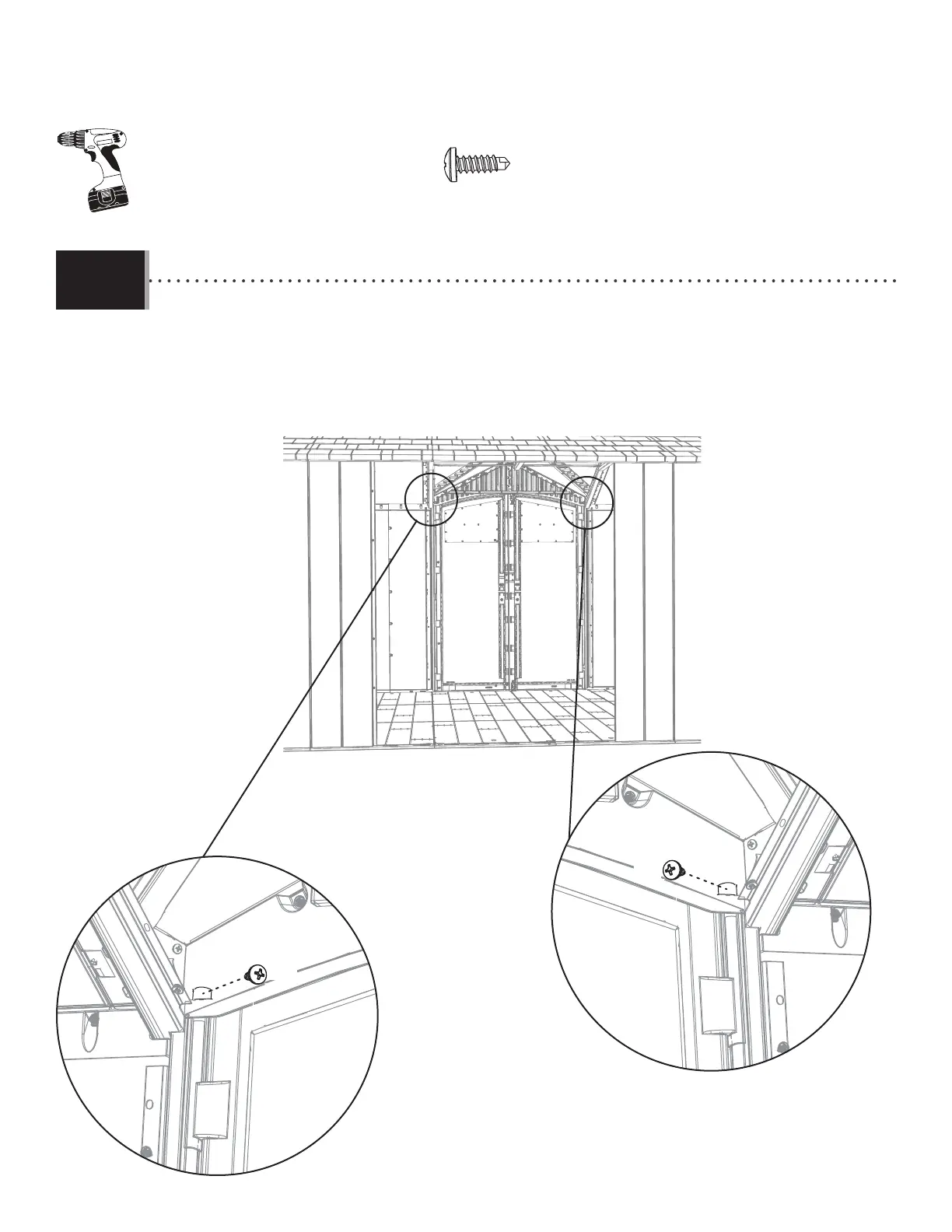 • Use an electric screwdriver to Insert a self tapping screw (BHJ) through the plastic of the gable and into the right and