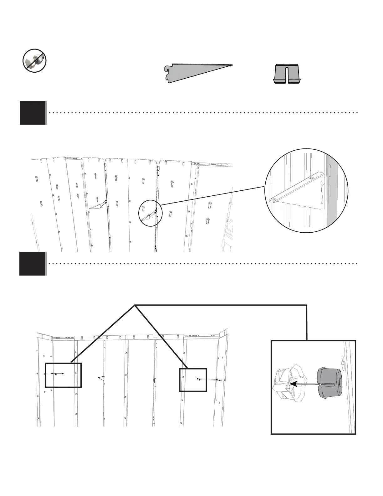 • Place screw anchors (FEX) into the side walls at the same level the shelf brackets were placed.