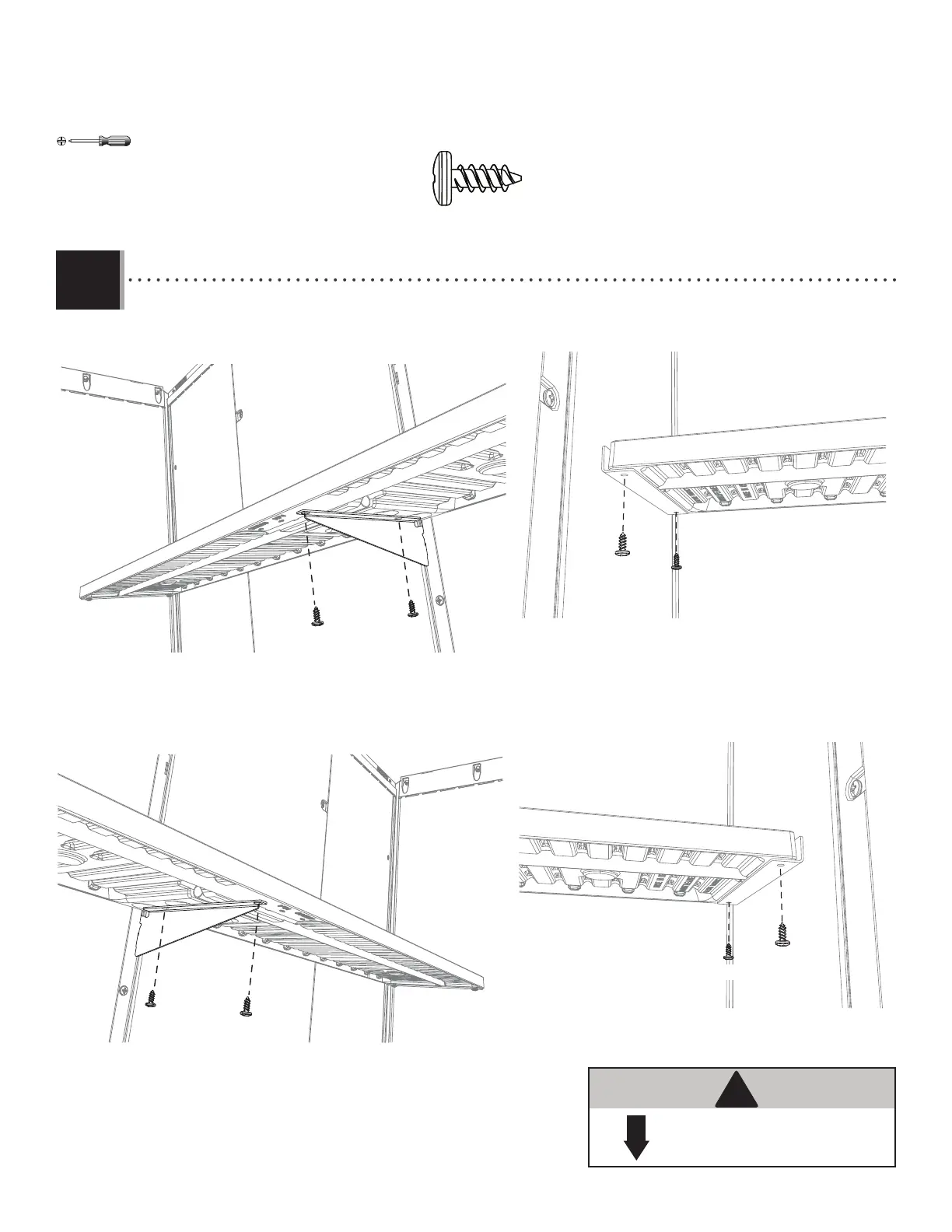 • Attach the shelf (AFV) to the corner wall panels and shelf support brackets using eight (8) screws (ADZ).