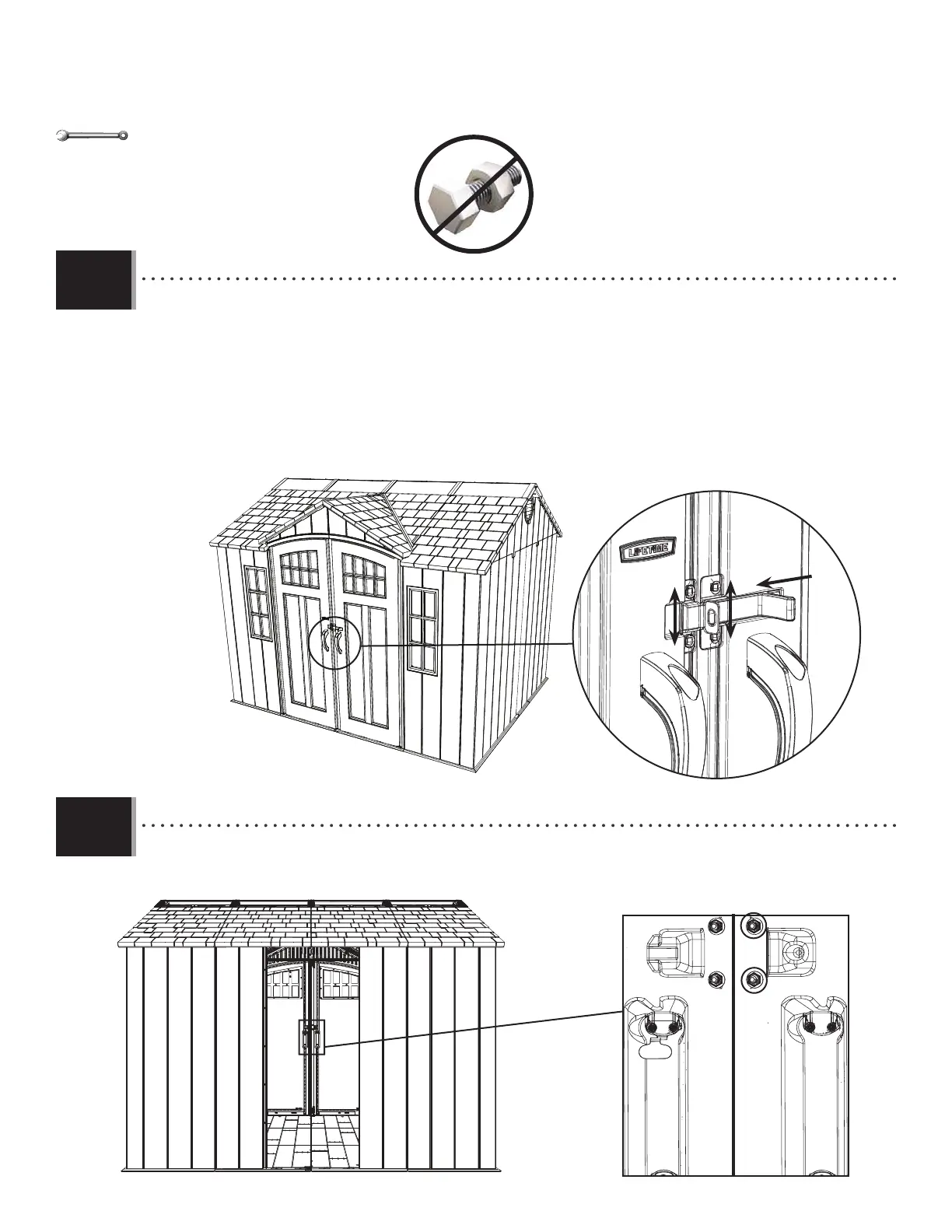 • Once the doors are the same height, have one adult with the tools stand inside the shed. Close the doors and