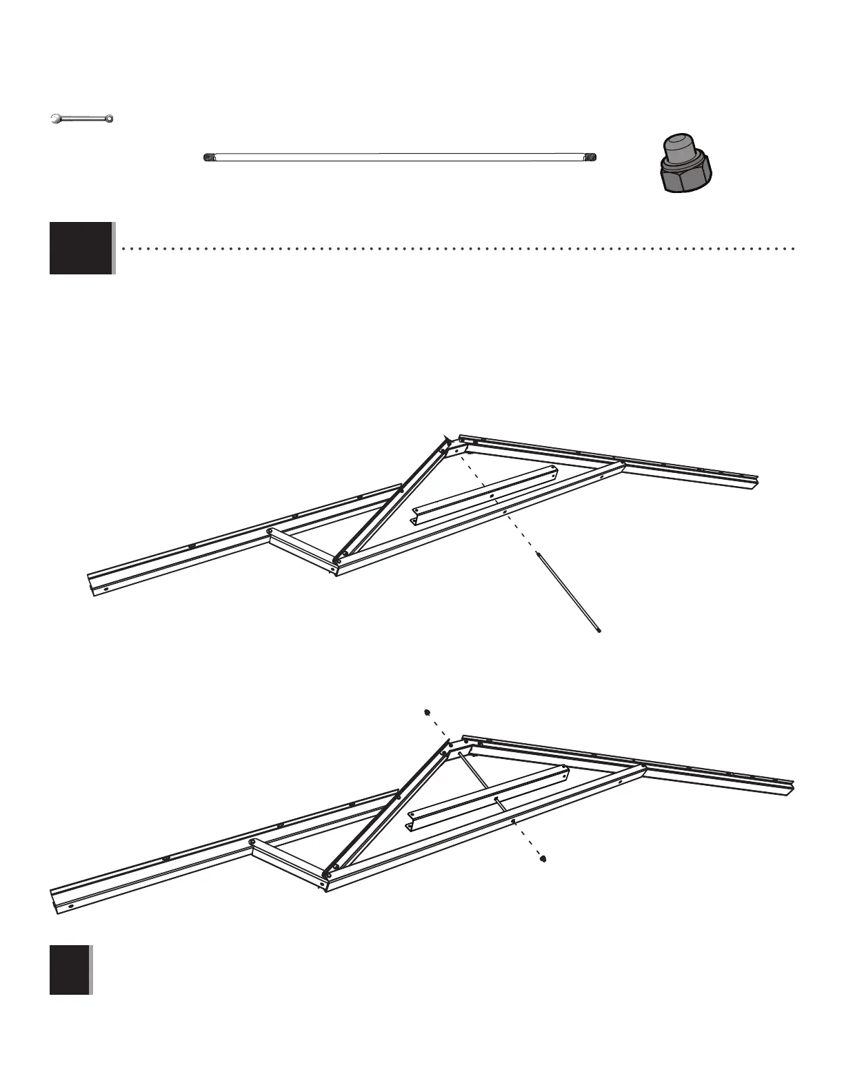 • Slide a truss rod (ADH) through the holes in the large truss brace, small truss brace (BRD), and connector. Secure with