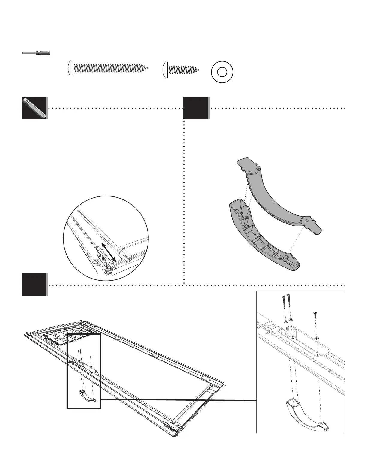 • Attacher la poignée à la porte à l’aide de la quincaillerie incluse. Ne pas trop serrer.