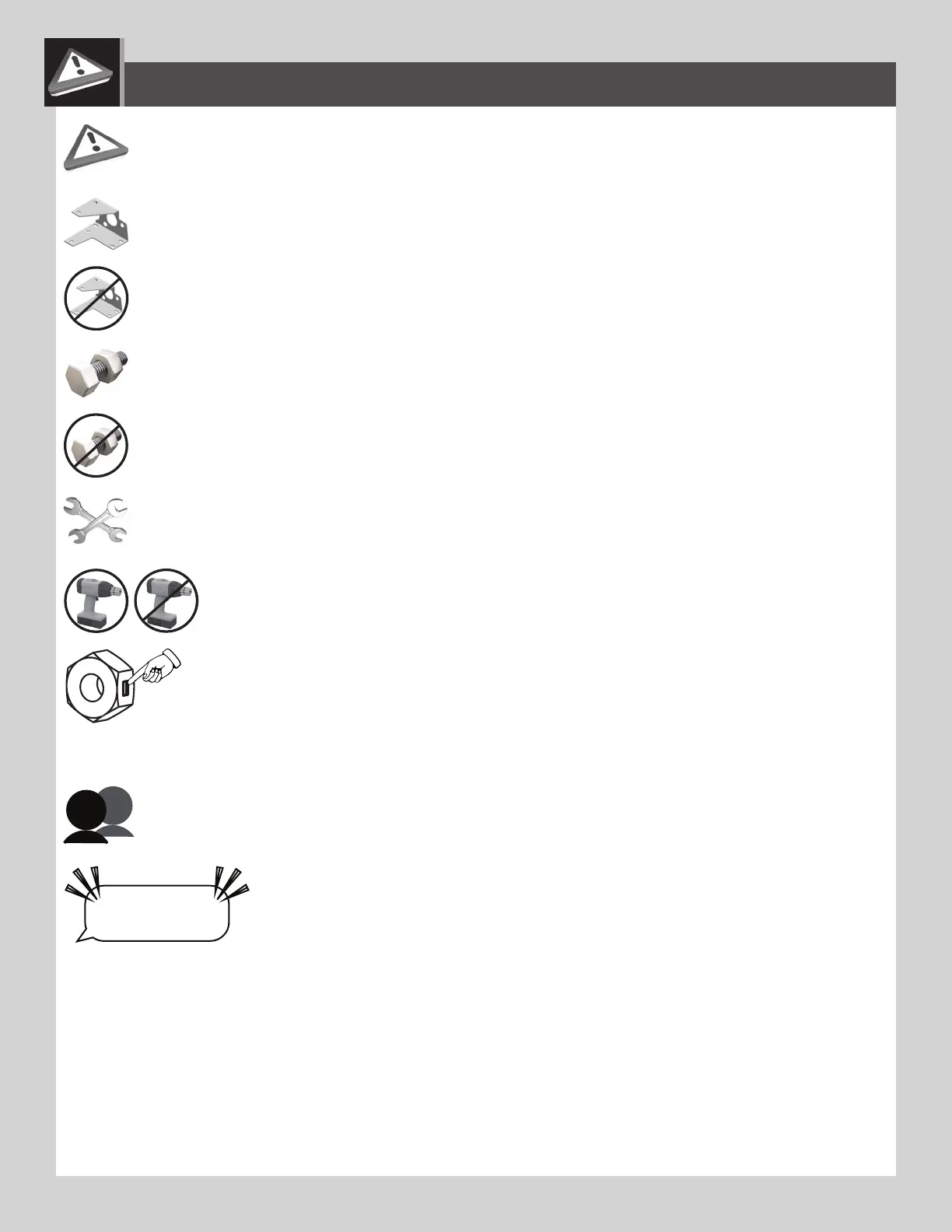 • Indicates to use/not use an electric drill for a specifi c step.