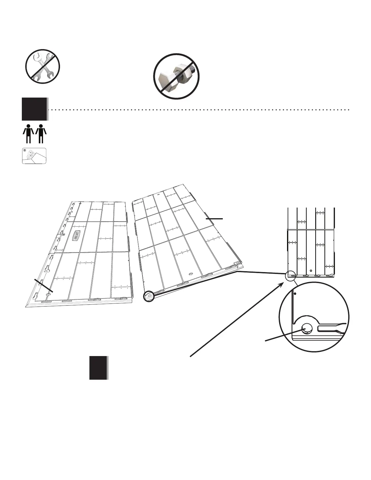• Hold an inner fl oor panel (CUD) at an angle and slide the tabs along the edge underneath an outer fl oor panel (CUW). The tabs