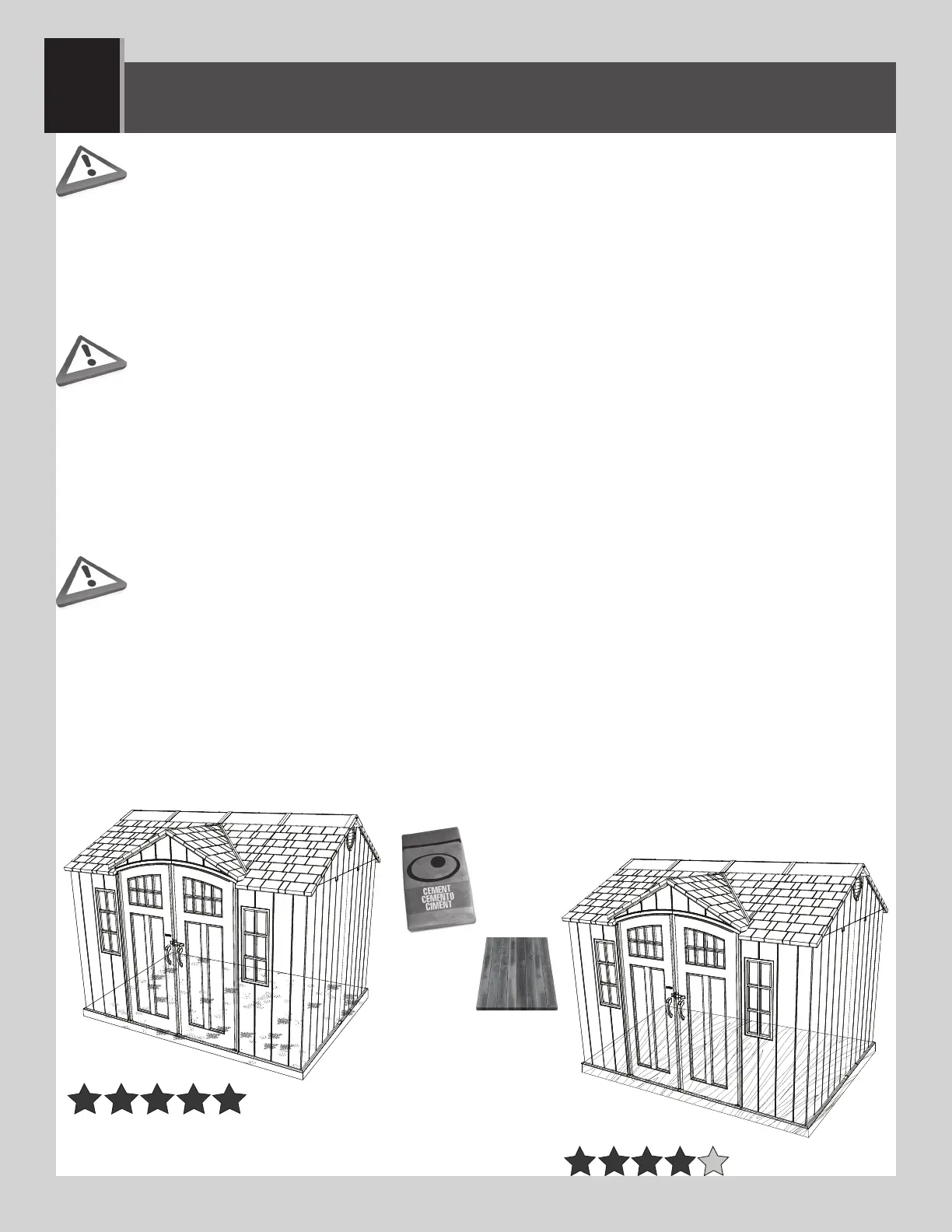 la caseta no requiere un permiso de construcción. Antes de comenzar el ensamble, es necesario verter o construir