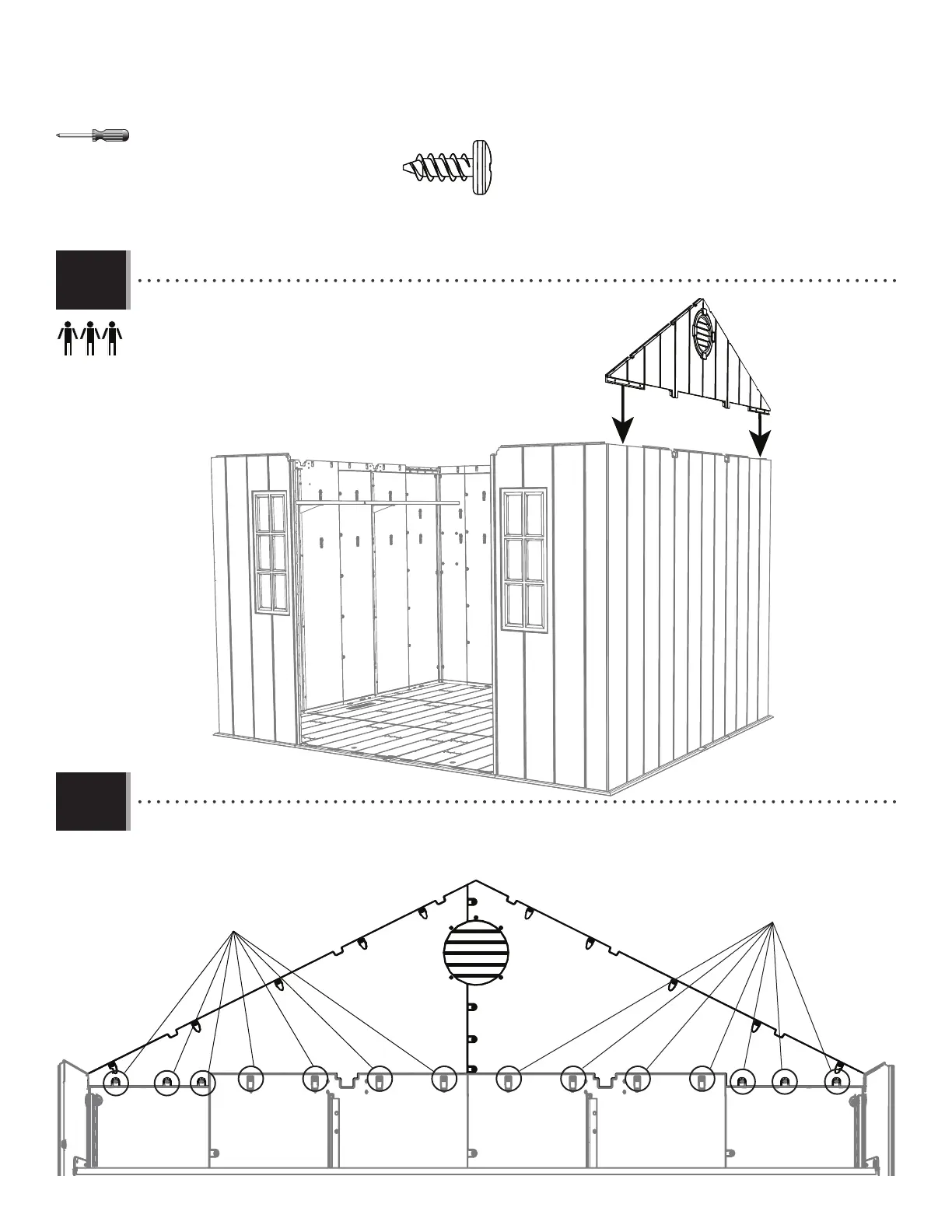 • Secure a side gable to the shed using fourteen (14) screws (ADZ).