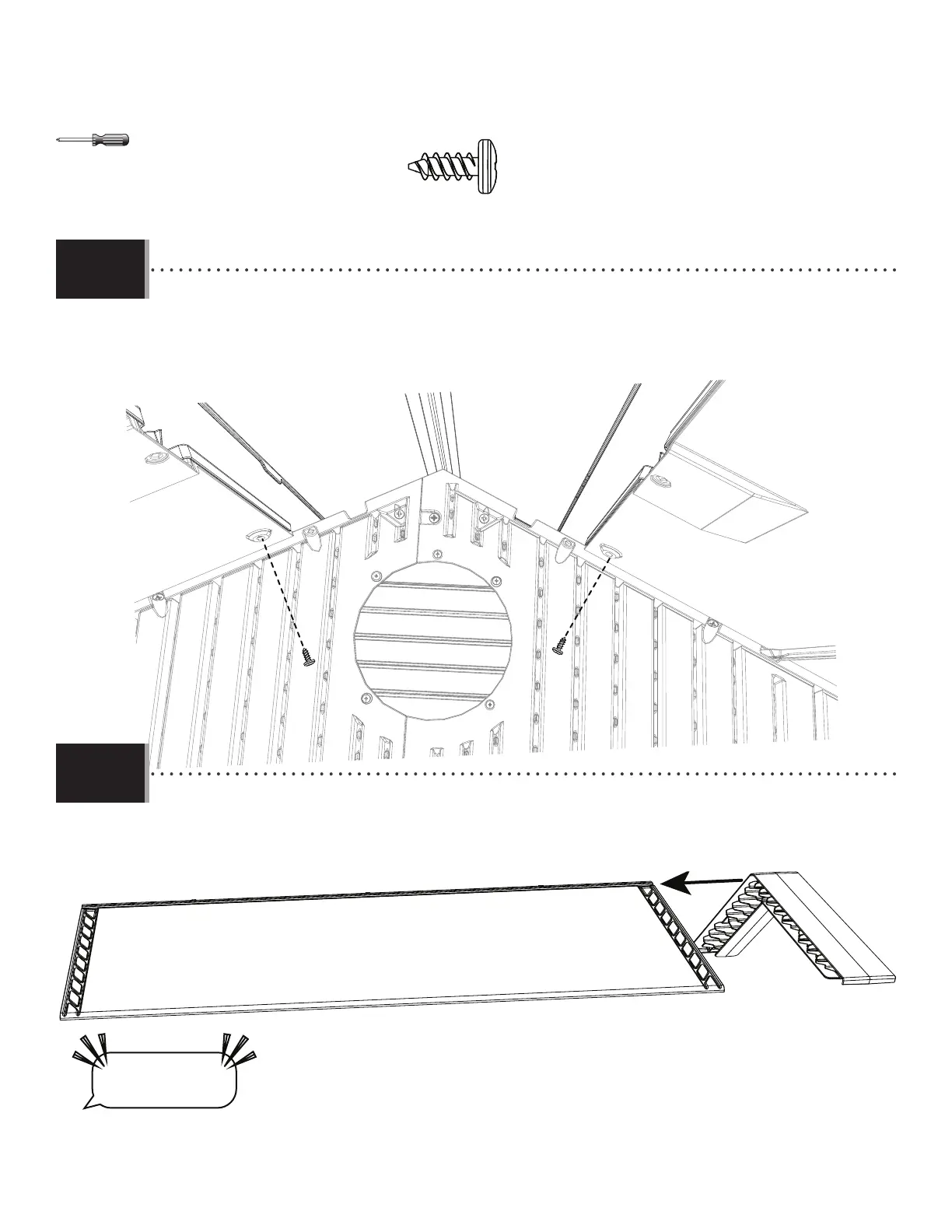 • Secure the skylight with the hardware indicated in the location shown. Do not use any other hardware until all