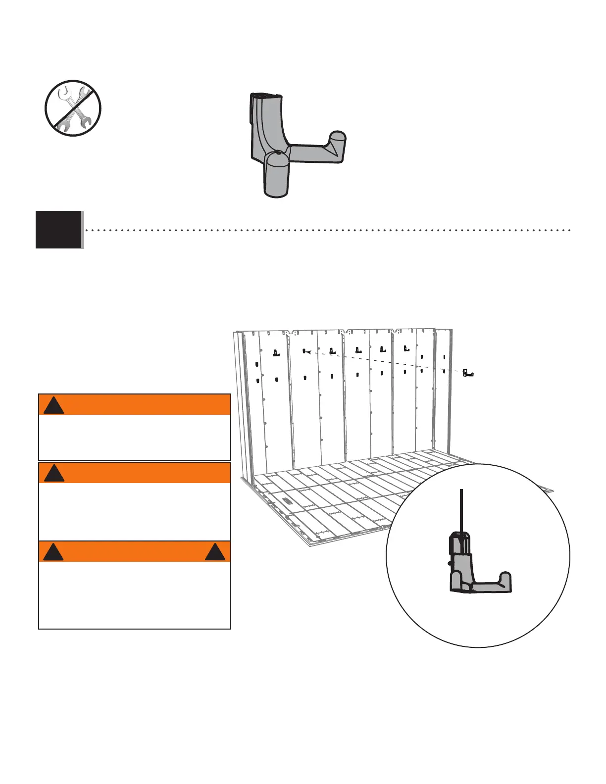 • Insérer les six (6) crochets muraux (EDL) dans les encoches dans les panneaux muraux. Ensuite, les pousser vers le bas