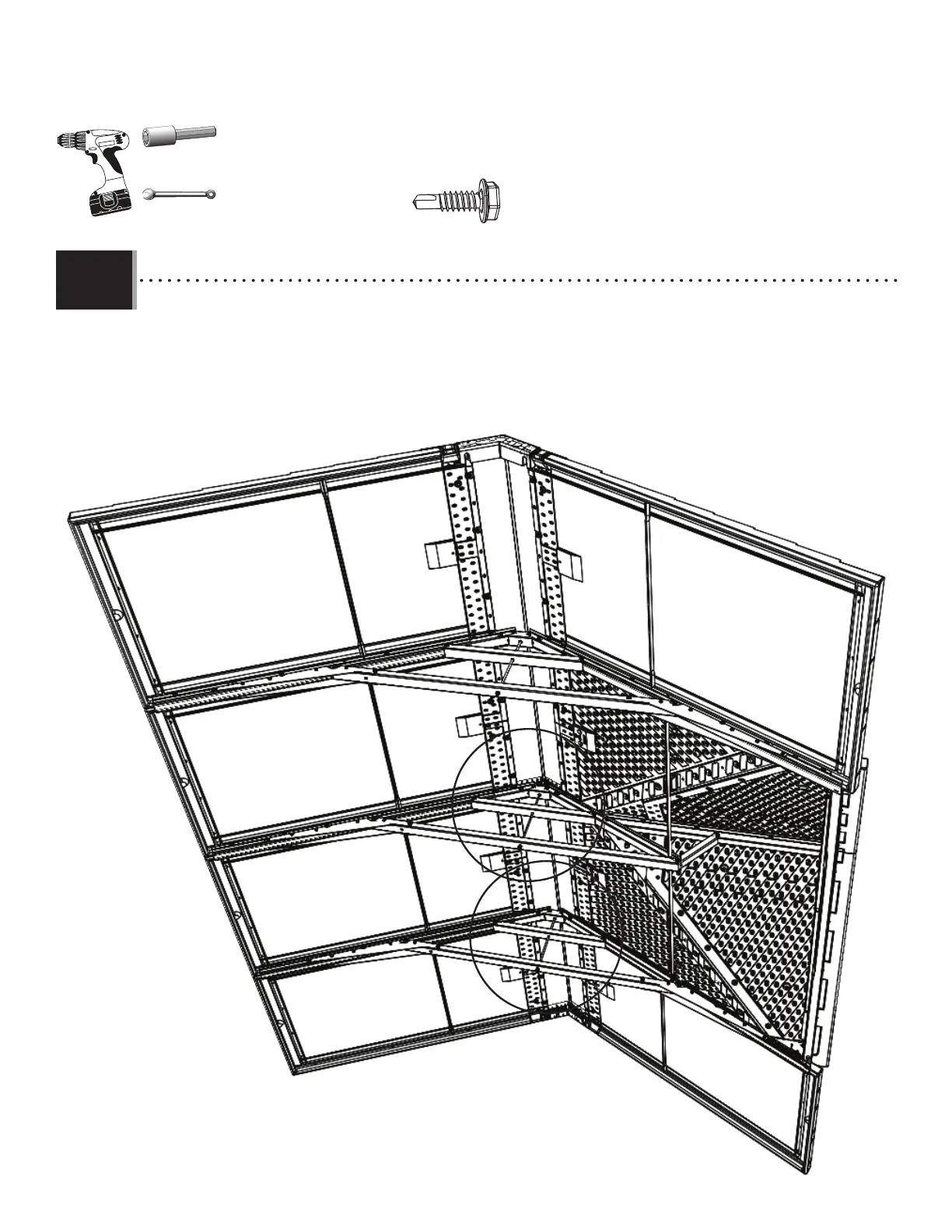 • Repetir paso 11.3 para los dos ensambles de cercha restantes. Apretar las tuercas ciegas.