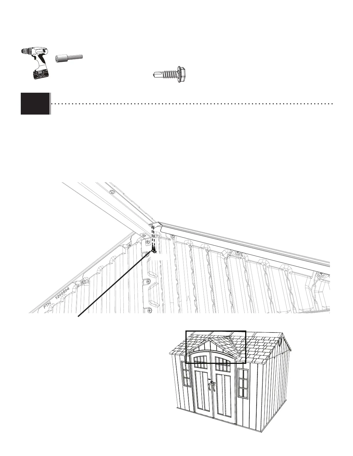 • Place the left gable support (EGR) up fl ush against the entry gable and roof as shown. Secure with two (2) self-tapping