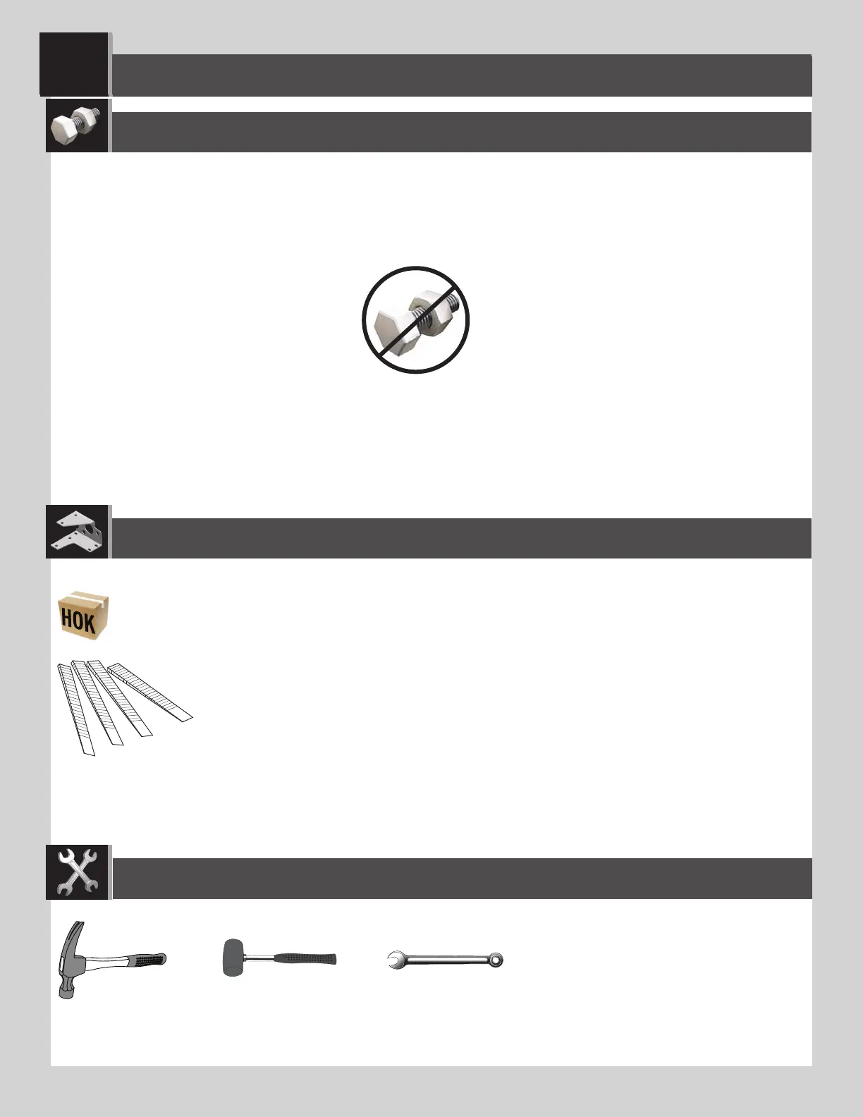 HARDWARE REQUIRED / QUINCAILLERIE REQUISE / HERRAJE REQUERIDO