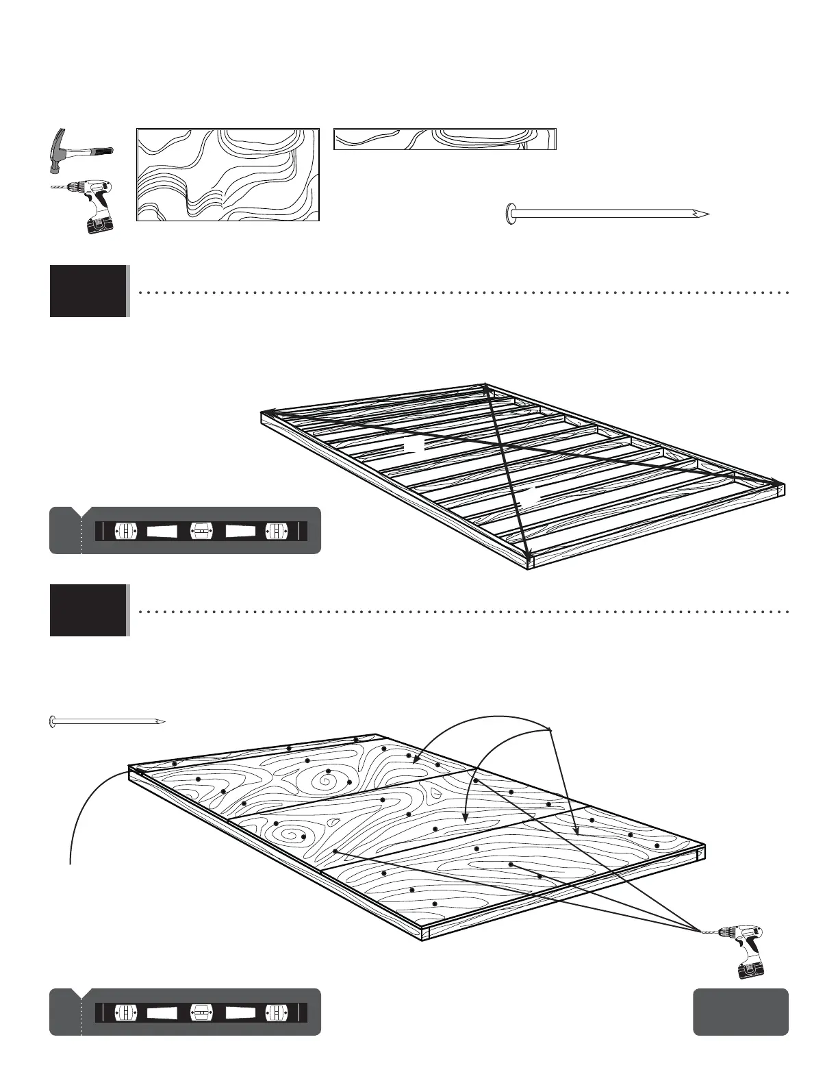 • Using nails, fasten the plywood to the frame. Then, drill 5/16” holes for drainage.