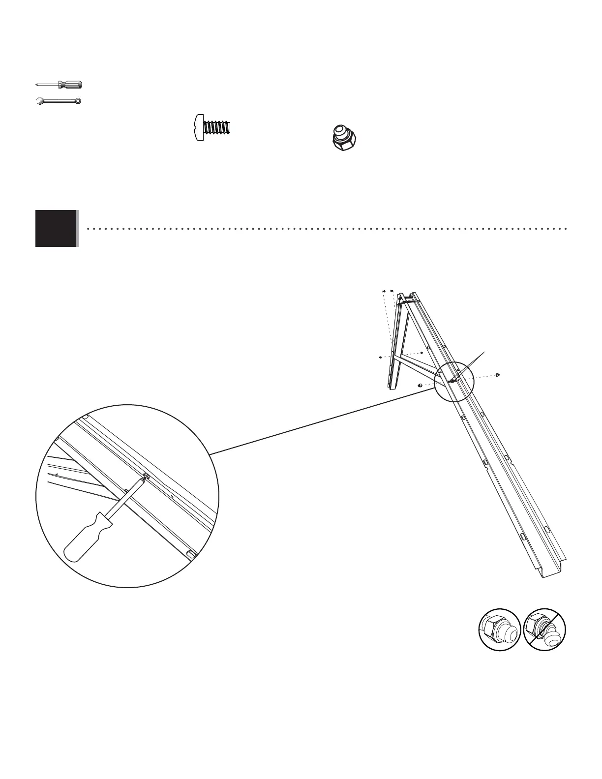• Attatch the Large Truss Brace using the hardware included. Do not overtighten the Cap Nuts.
