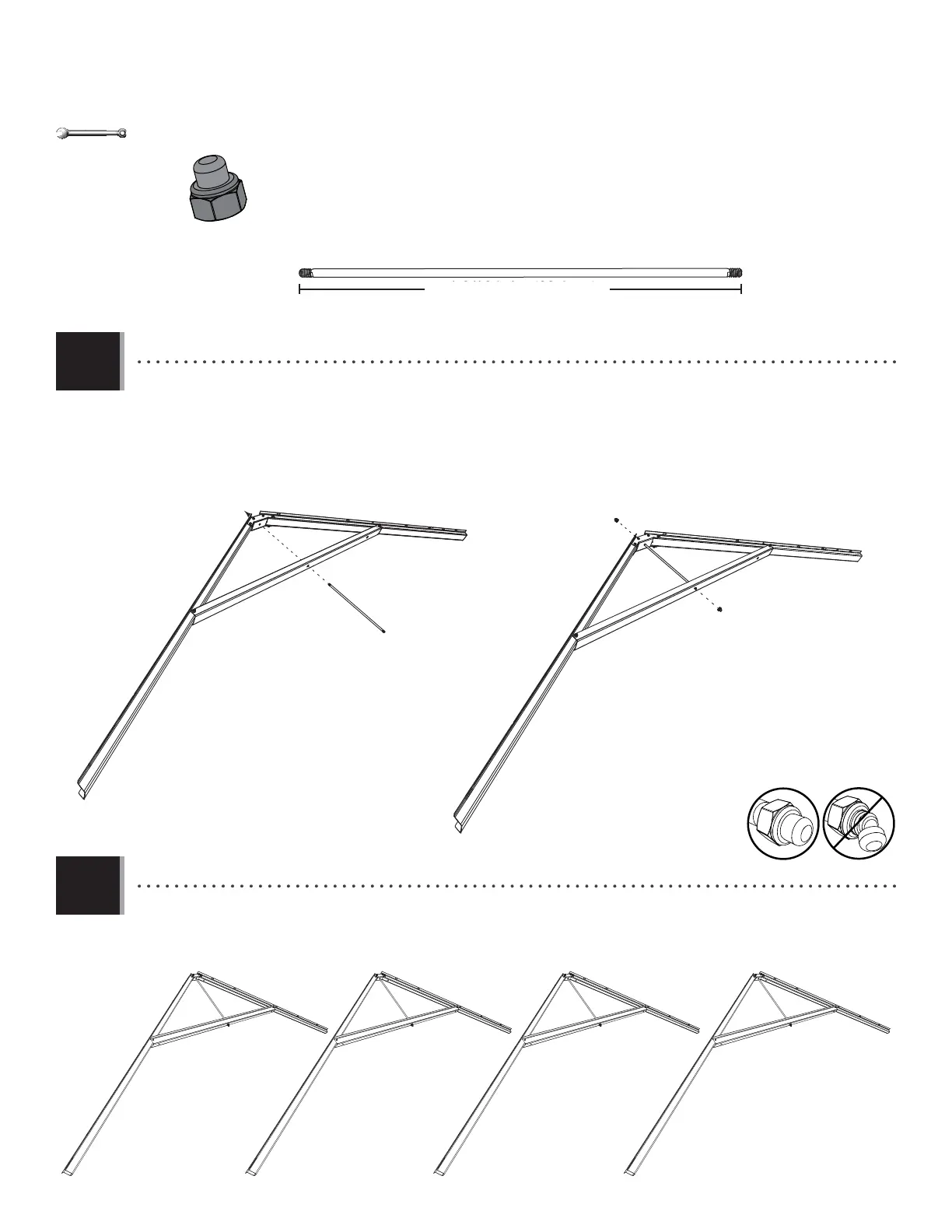 • Slide a Truss Rod (ADH) through the holes in the Large Truss Brace and Connector. Secure with two Cap Nuts (ADJ). Do