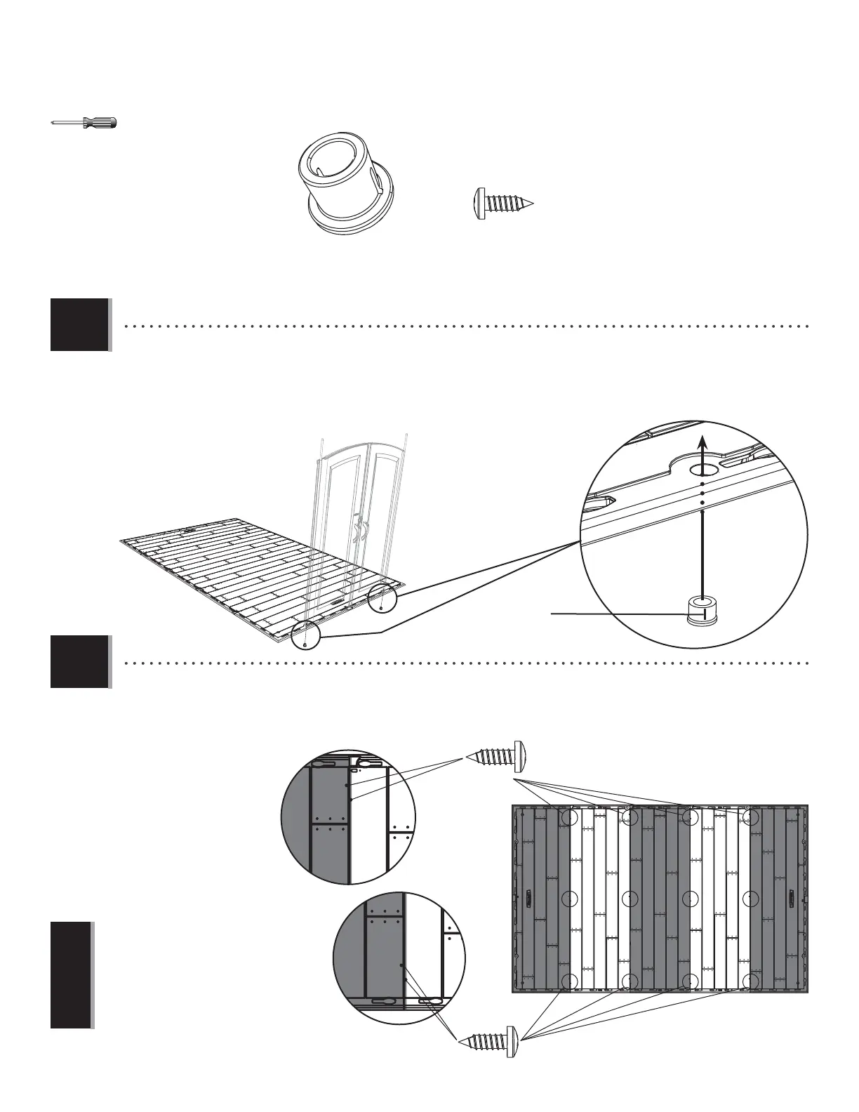 • Insert six (6) Screws (BQC) through the divots in the Floor Panels and into the tabs of the adjacent Floor Panels.