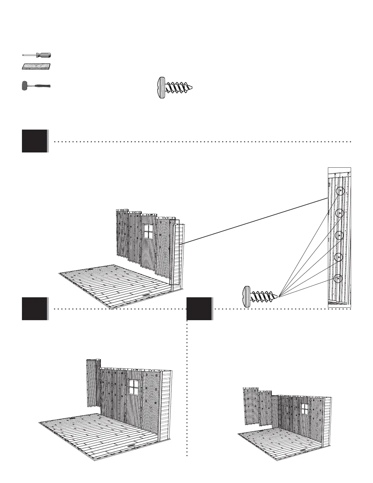 slots along the edge of the Floor. The Window Wall Panels may be inserted on either side of the shed.