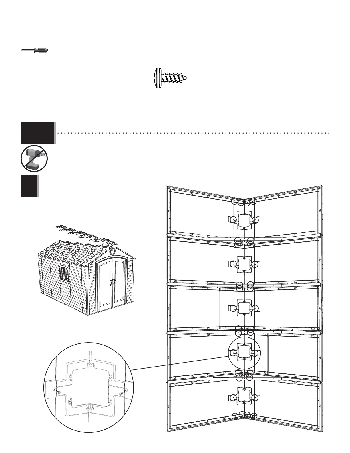 • Starting at the front, attach the Roof Caps to the shed using the hardware included.