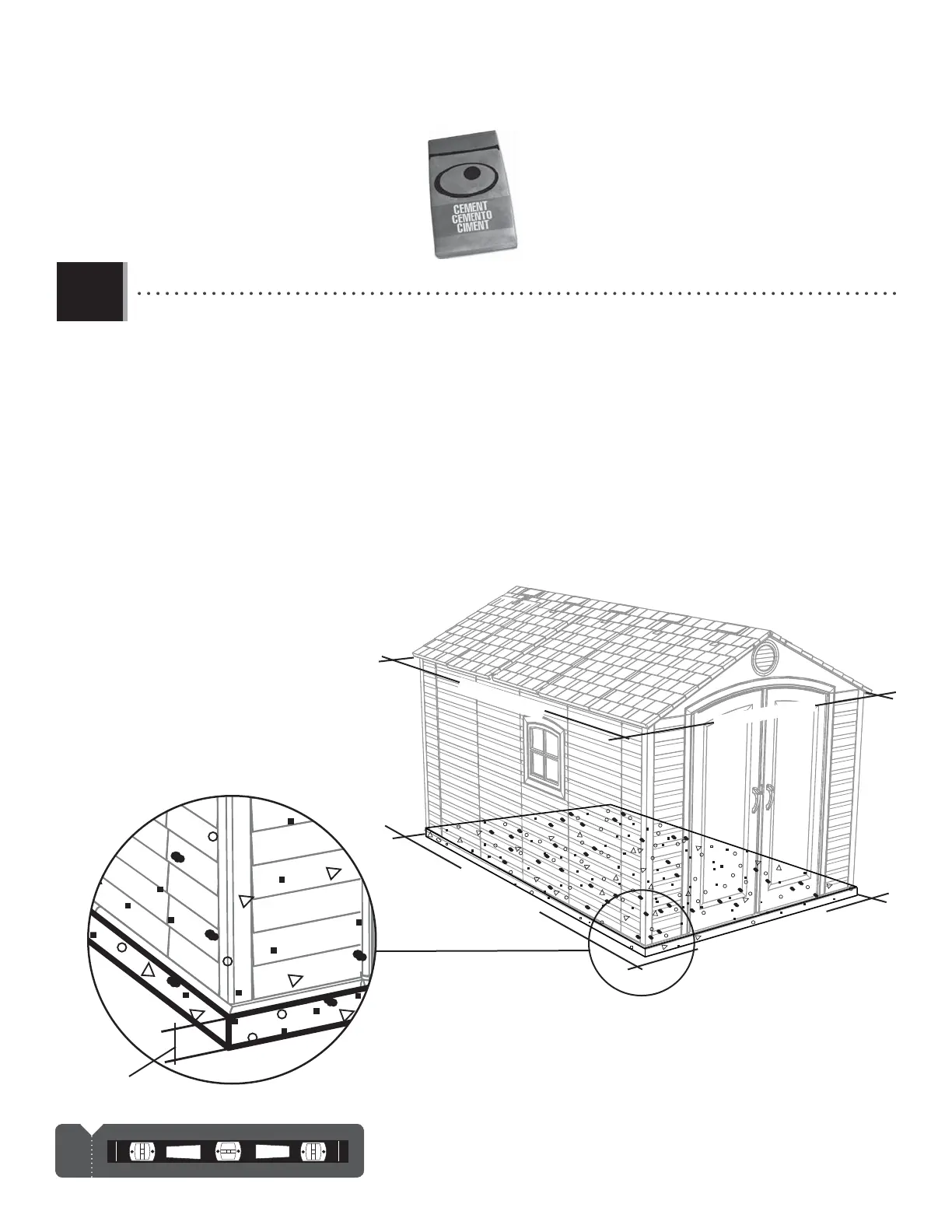 • The concrete should be approximately 4” (10,2 cm) thick. The actual dimensions of the shed, at its widest