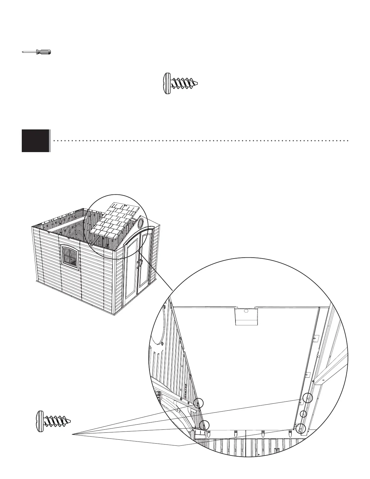• Insert the fi rst two Screws (ADZ) through the Gable and into the Roof Panel and the frist two Screws (ADZ) through