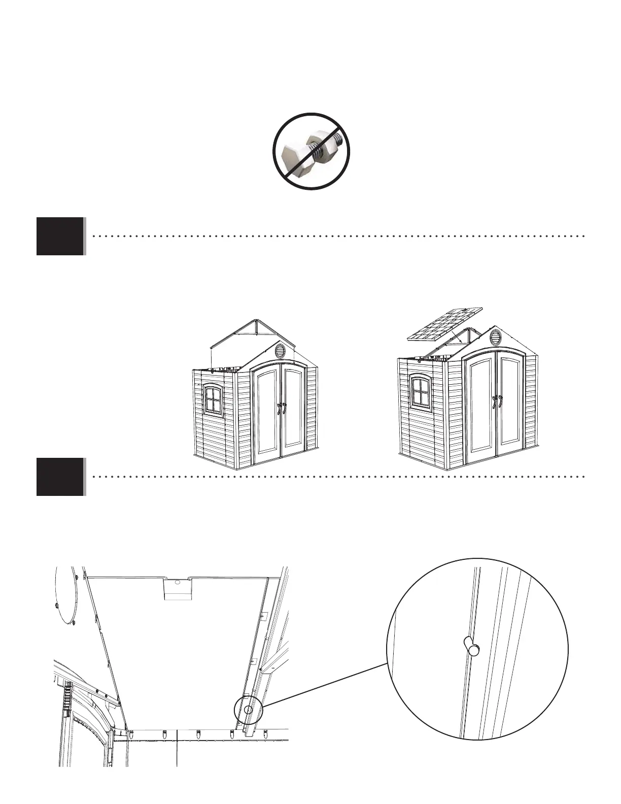 • The groove at the bottom of the Roof Panel sets over the top of the Wall Panel. Ensure the alignment nub fi ts into