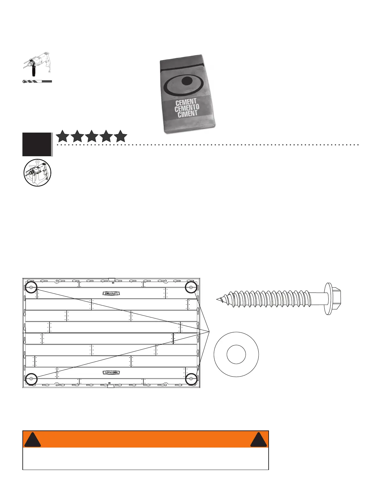 • Si desea anclar su caseta a una plataforma hecho de concreto, es necesario comprar el herraje de anclaje