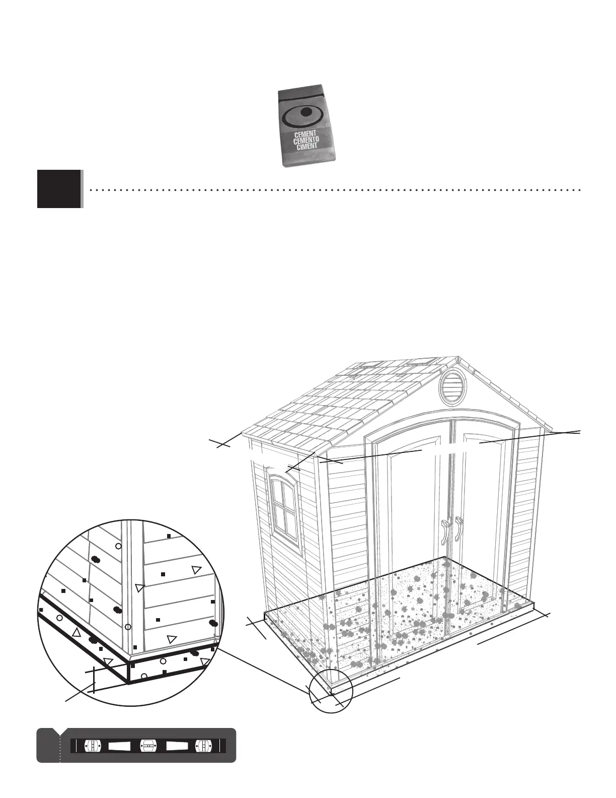 • The concrete should be approximately 4” (10,2 cm) thick. The actual dimensions of the shed, at its widest