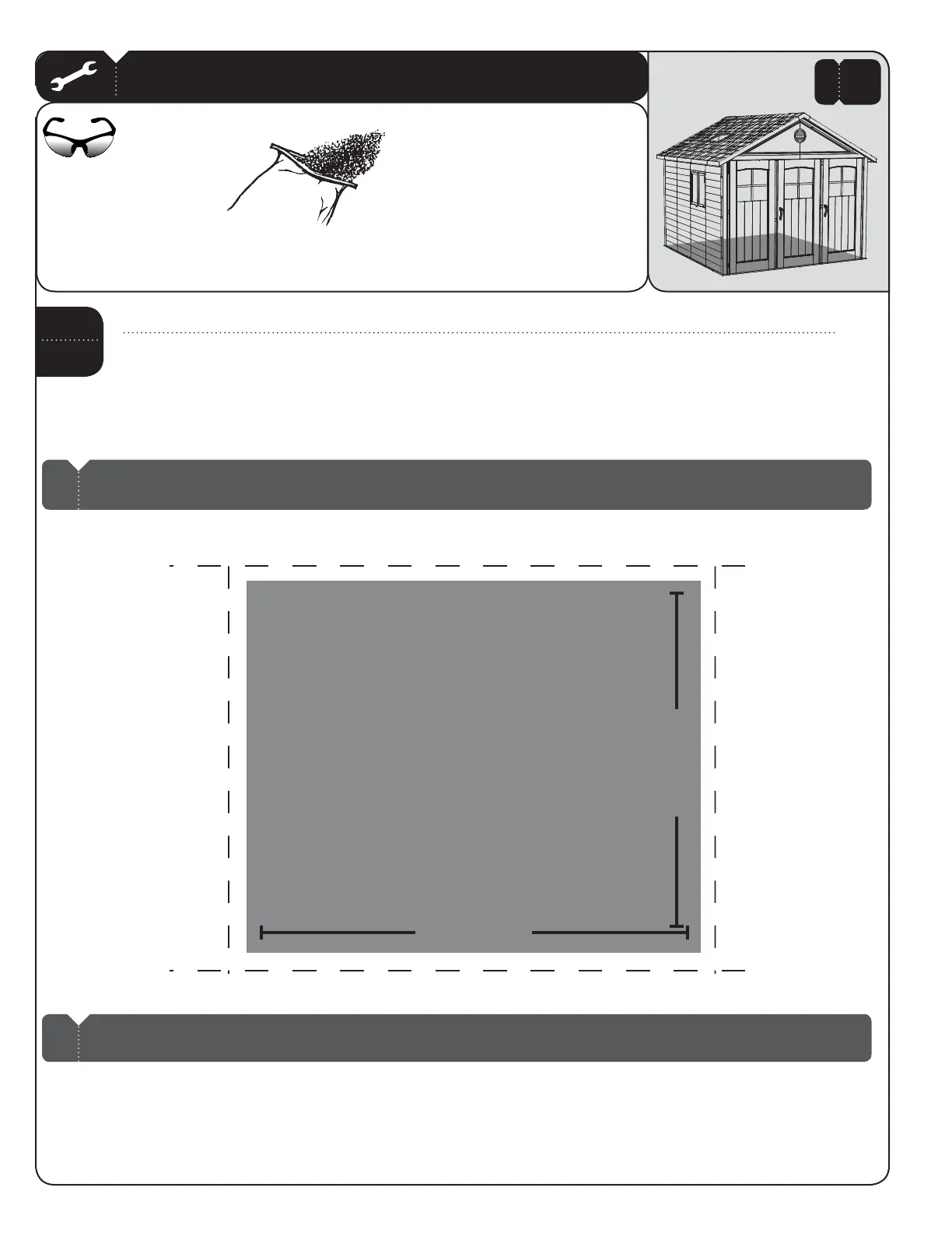 Note: Surface must be leveled before installation. If the surface is not properly leveled, the Outdoor Shed will not assemble or function correctly.