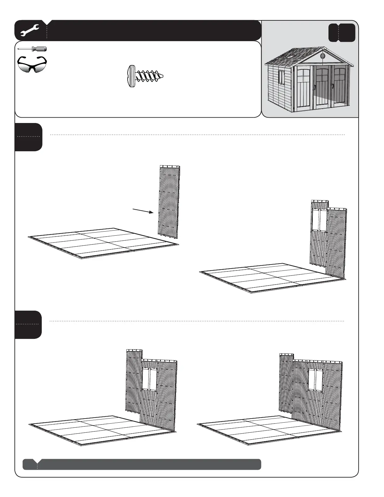 into the slots on the Shed Floor. After inserting the tabs, slide the Wall Panel to the right to lock it in place.
