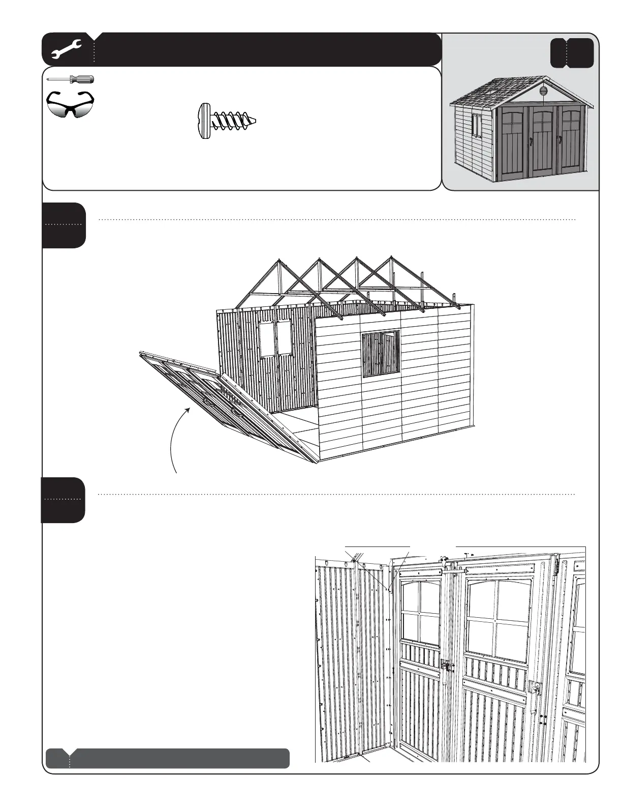 Place the bottom of the Door/Frame Assembly next to the front Floor Panels of the shed, and lift the Door/