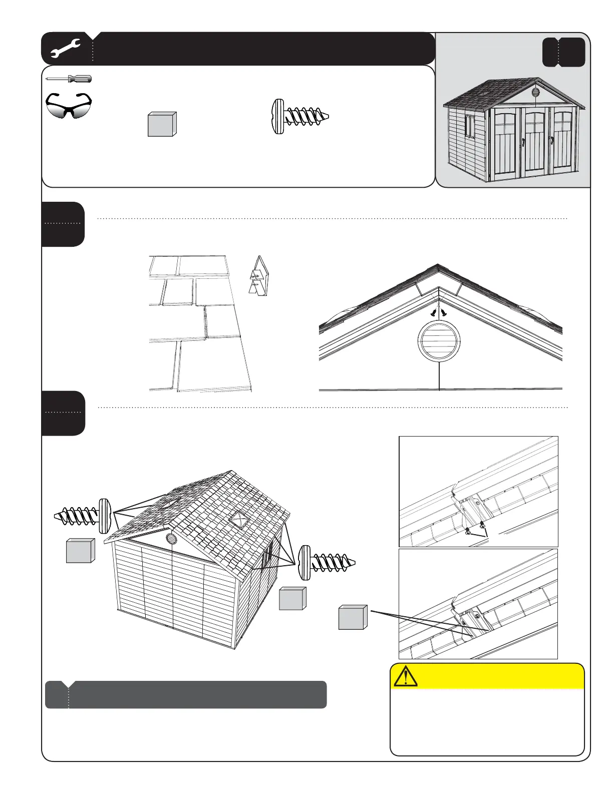 Install a Roof Cap Cover (AHA)BUUIFGSPOUBOESFBSPGUIF4IFEVTJOHUXP1/4” x 5/8” Phillips Pan-Head Screws (ADZ)