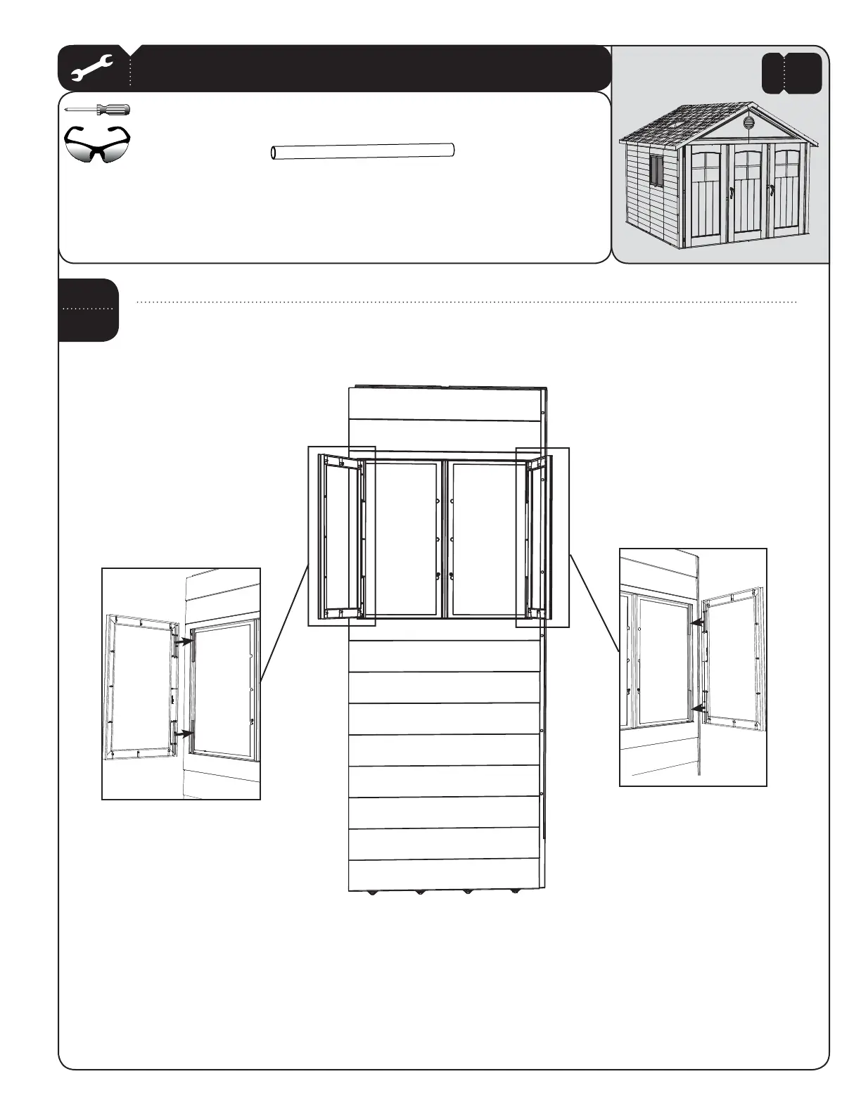 Slide Window Hinge Tubes (AIR) into the upper and lower hinge holes and fi t a Window Frame (AHG) over the Hinge