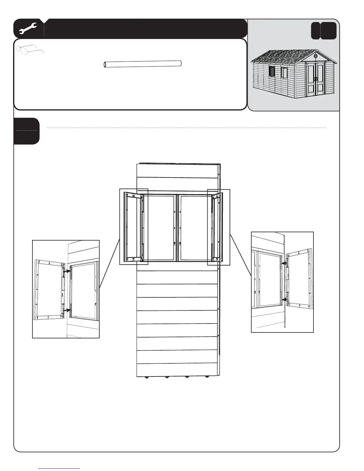 Slide Window Hinge Tubes (AIR) into the upper and lower hinge holes and fi t a Window Frame (AHG) over the Hinge