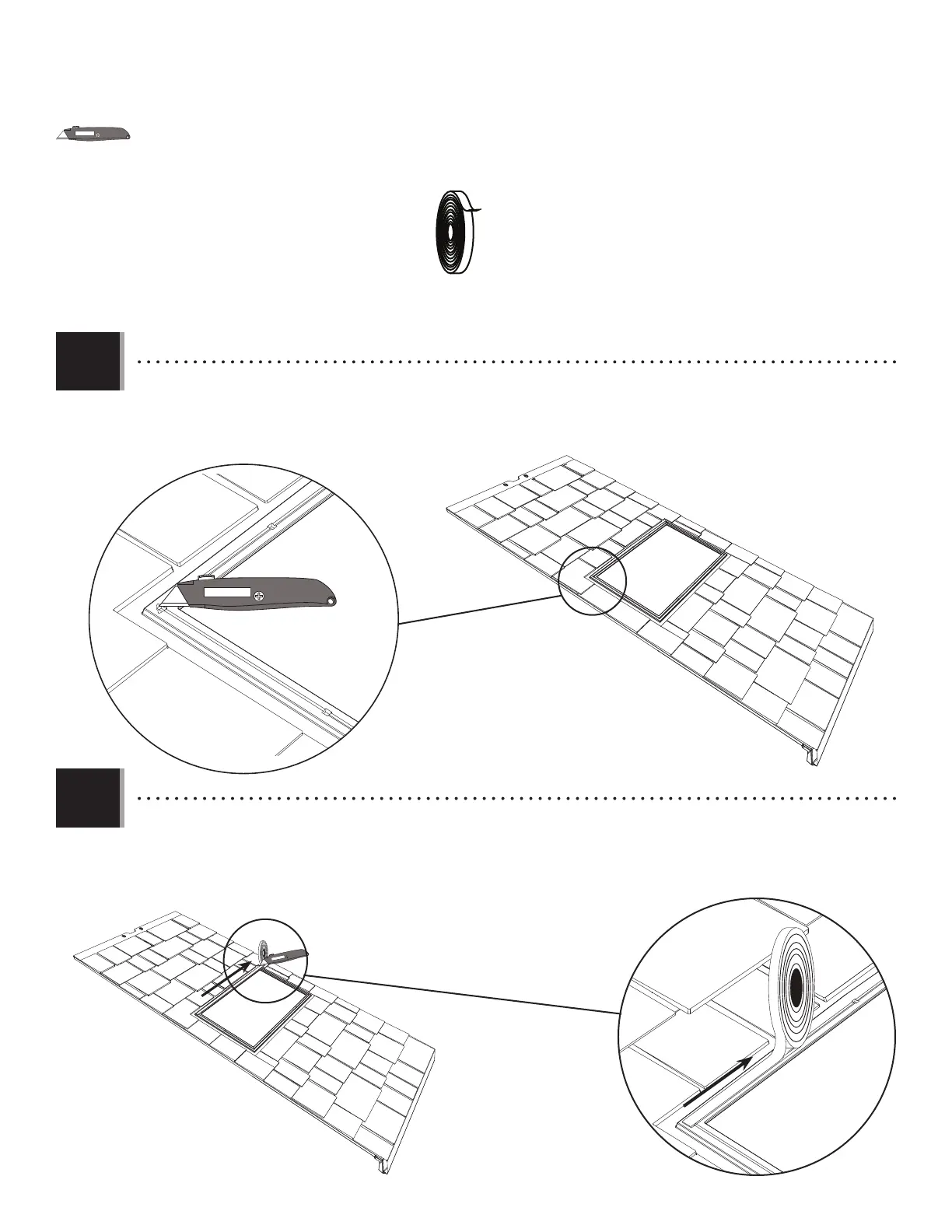 • Lay Butyl Tape (AHI) along the groove running along the top edge of the opening of the Panel. Cut the Butyl Tape.
