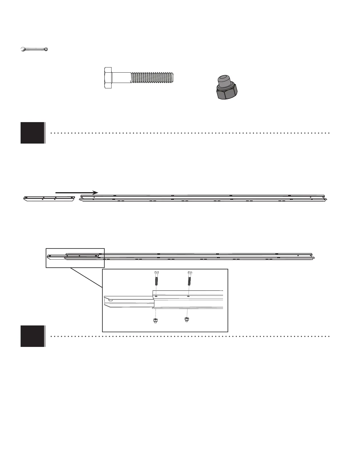 • Place a Short Wall Channel Extension (AFN) into the top of the Wall Channel. Secure with two (2) Bolts (AAK) and two (2)