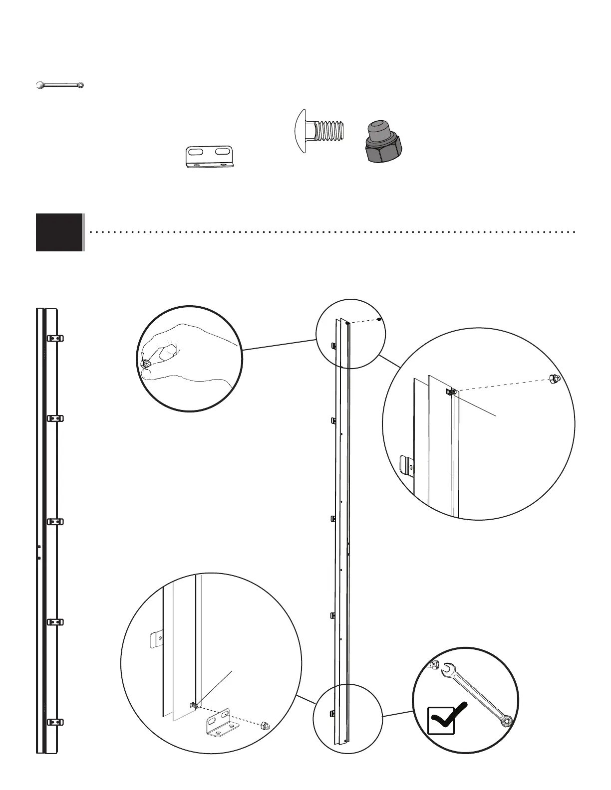 • Attach the following hardware to the Hinge (AFI) for the Right Door. Only hand tighten the top Nut (ADJ).