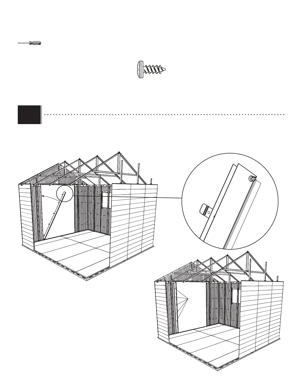 • Slide the edge of the right Hinge over right, front Wall Panel, align the holes, and secure with fi ve (5) Screws (ADZ).