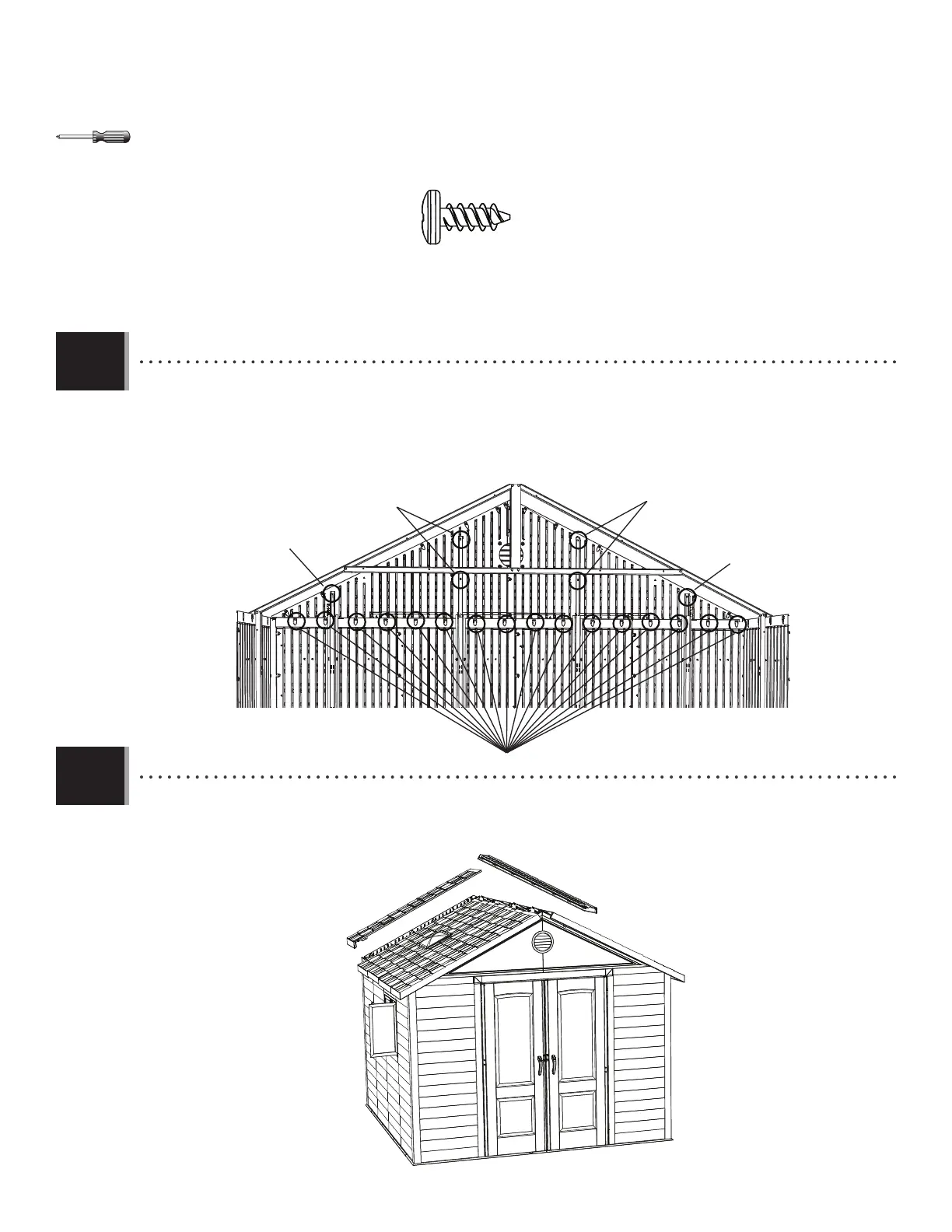 • Secure the Gable with sixteen (16) Screws (ADZ). Secure the Gable to the Wall Support Channels using six (6)