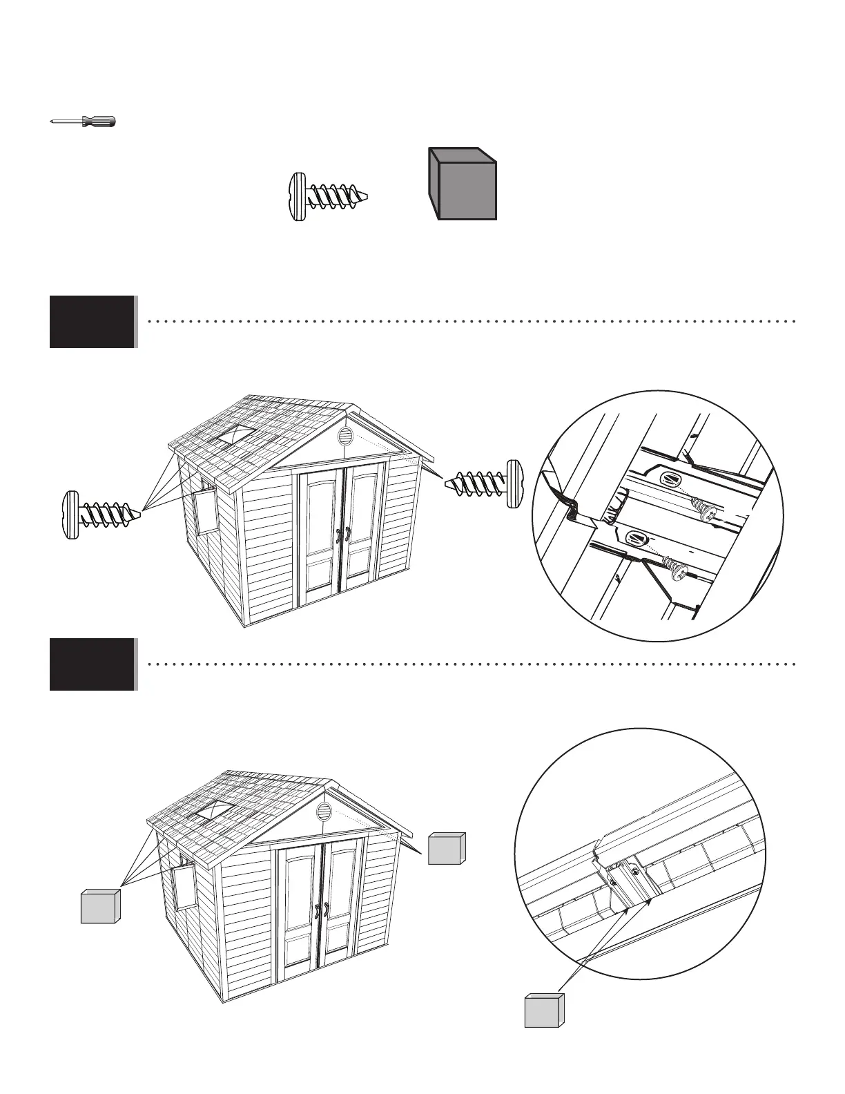 • Insérez deux (2) vis (ADZ) à travers la ferme et dedans les panneaux de toit.