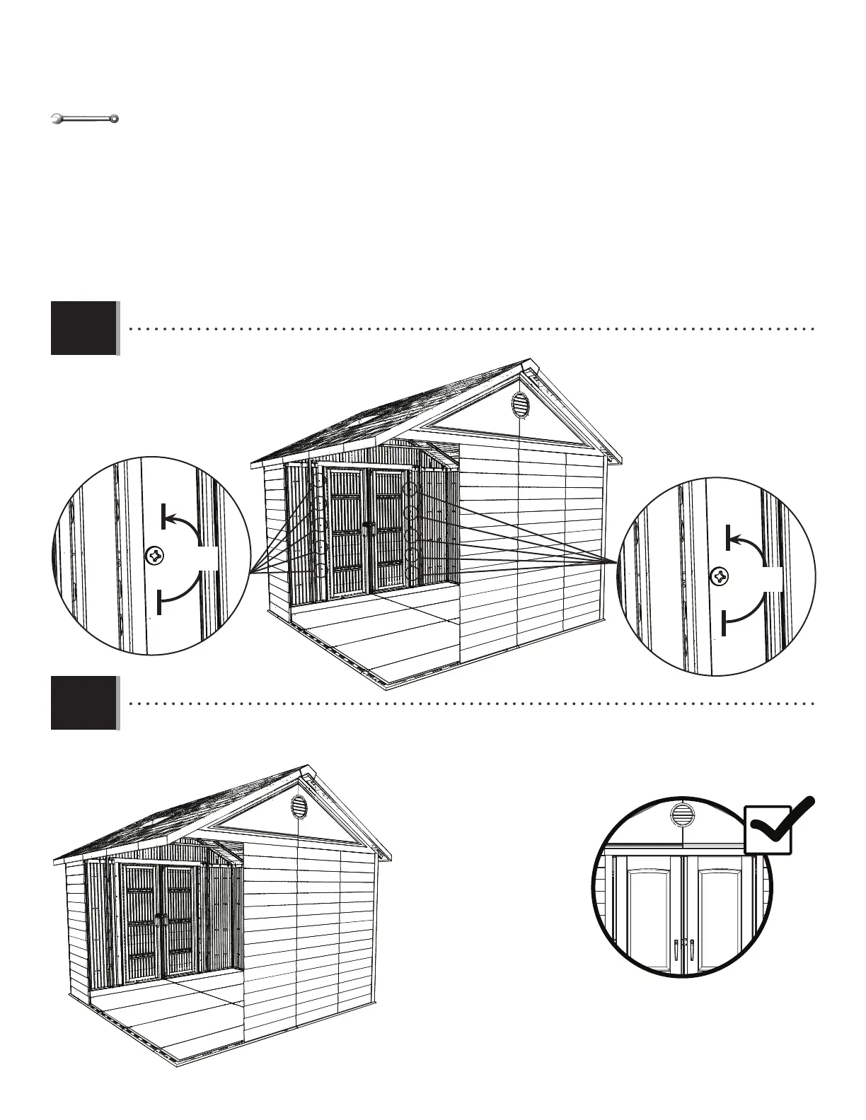 • Ajustez les portes pour que soient parallèles et resserrez la quincaillerie. Ne serrez pas trop.