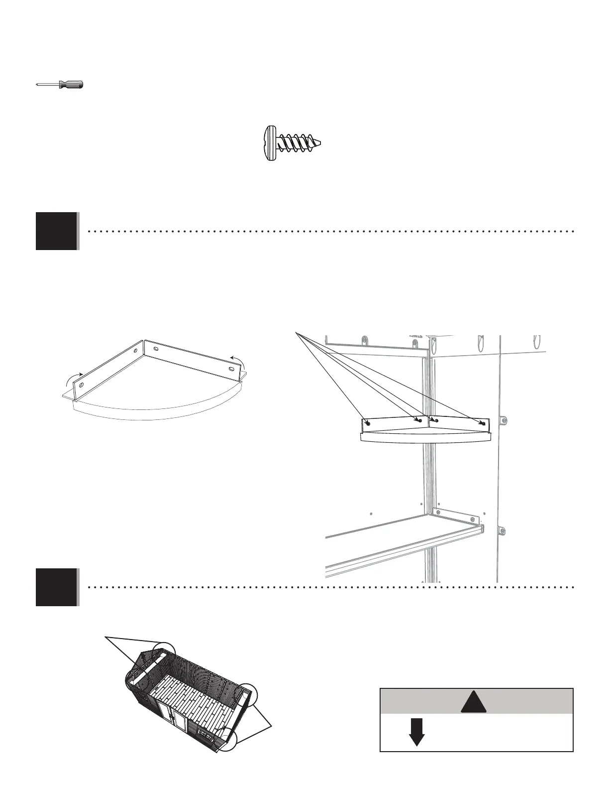 • Répéter l’étape précédente pour attacher les étagères angulaires restantes dans les autres encoignures.