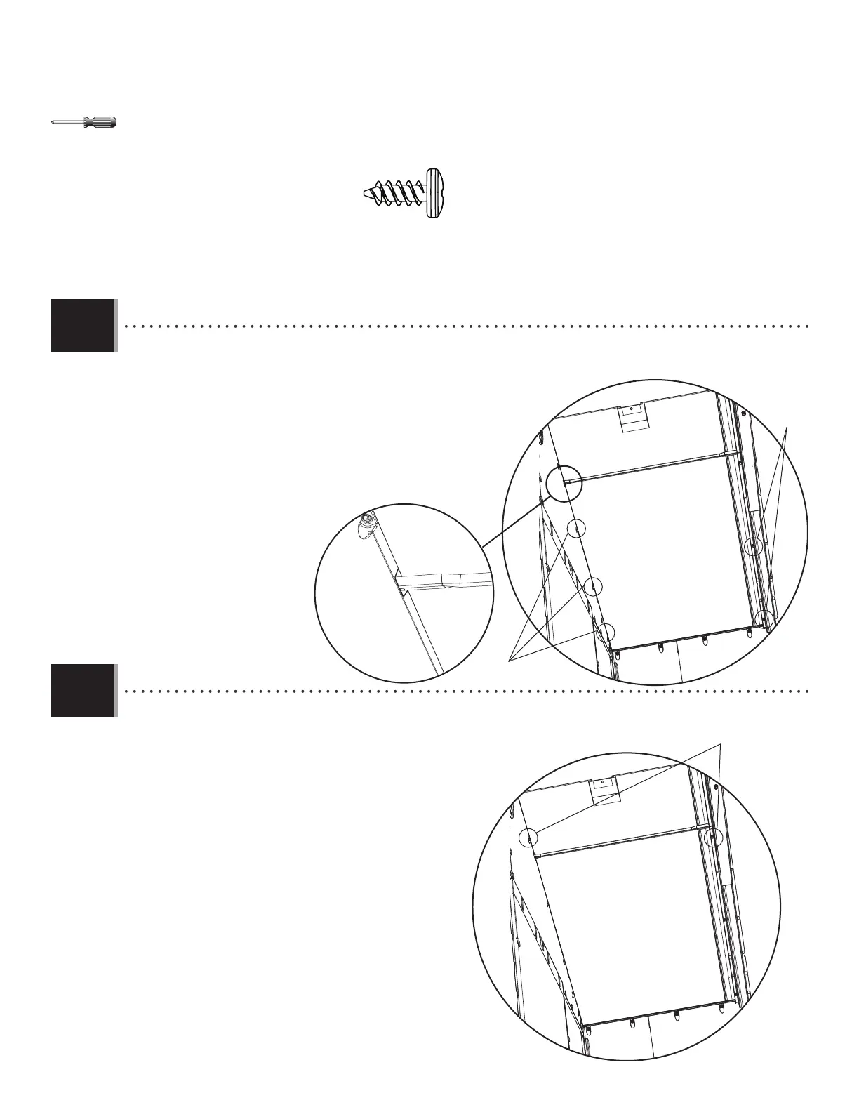 • Insert the fi rst three (3) Screws (ADZ) through the Gable and the fi rst two (2) Screws (ADZ) through the Truss and into