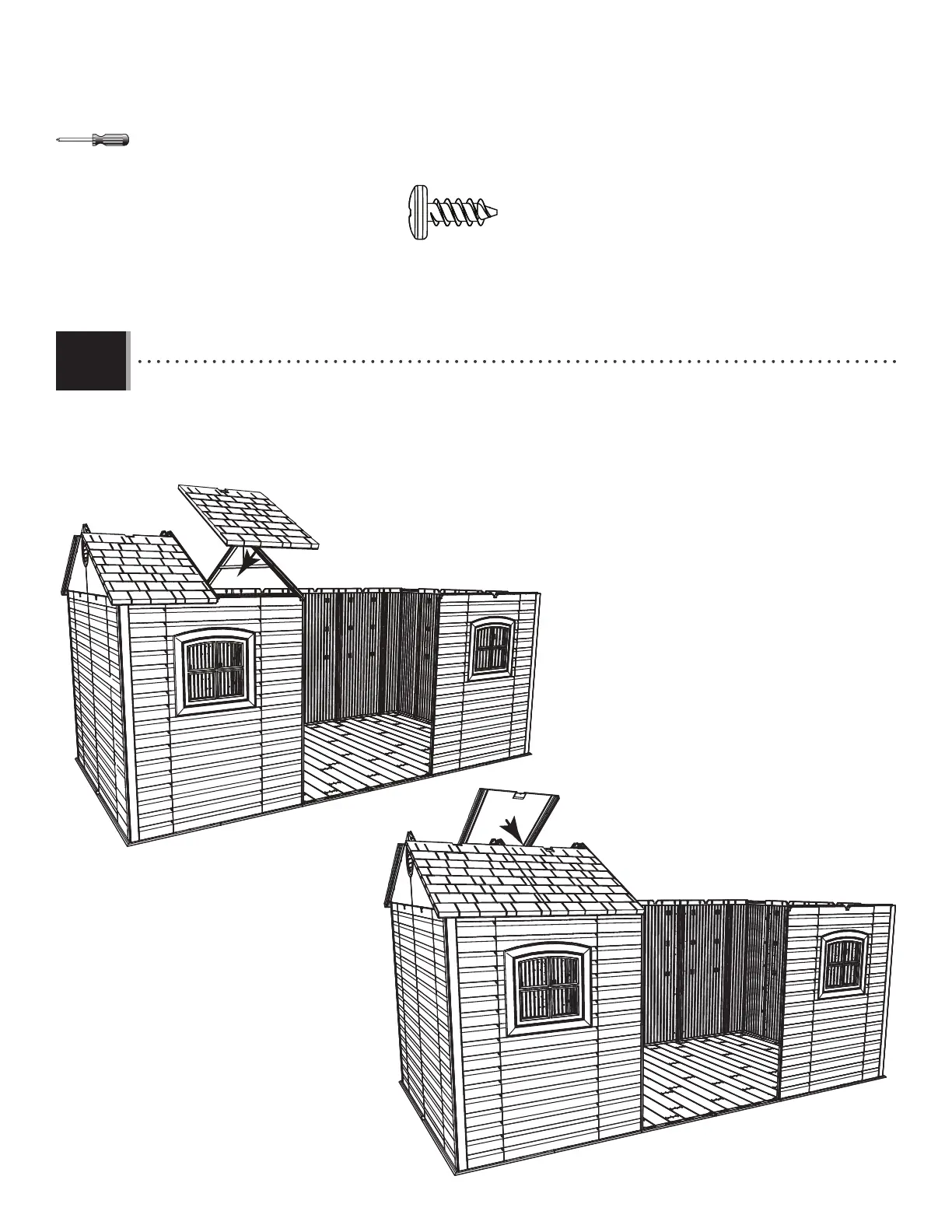 • Attach these Roof Panels (AGQ) in a similar manner as the previous Panels. Roof Panels in these locations only use ten