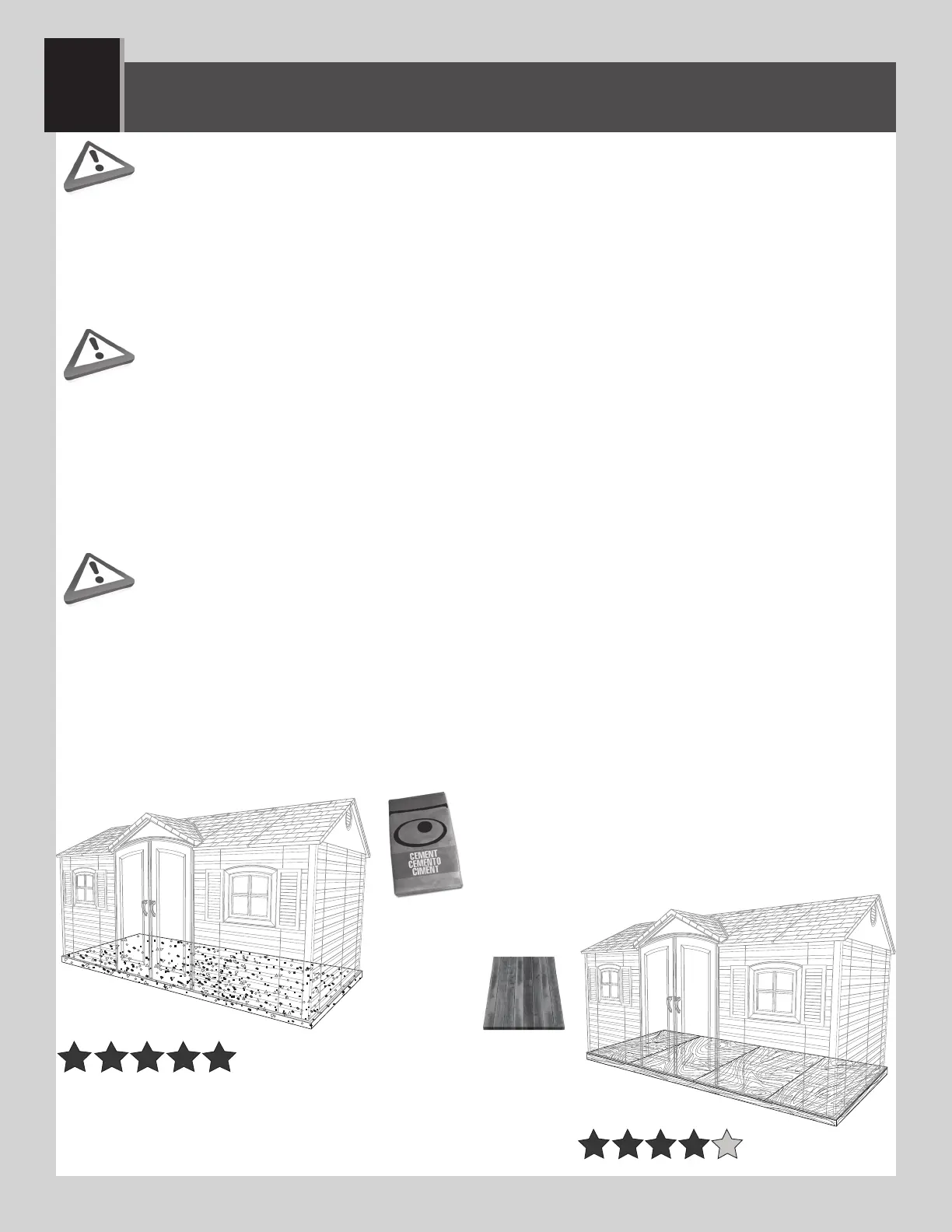 • Es preciso construir una plataforma sobre la cual usted debe ensamblar su caseta. Puede suceder que en el