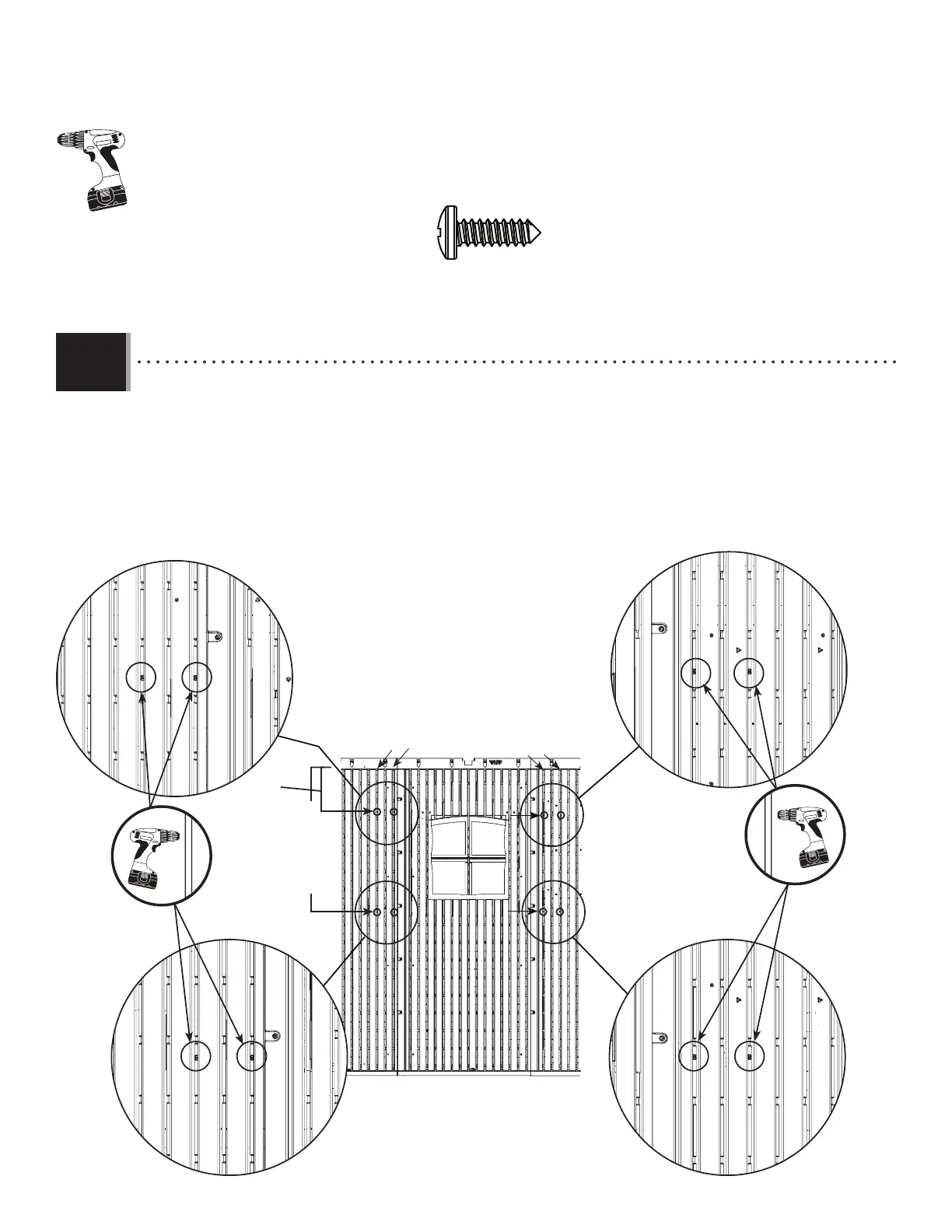 • There are four sets of two screw location indicators. The measurements are shown to help you locate them. One by one, insert