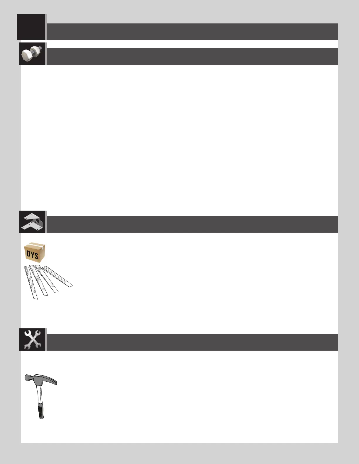HARDWARE REQUIRED / QUINCAILLERIE REQUISE / HERRAJE REQUERIDO