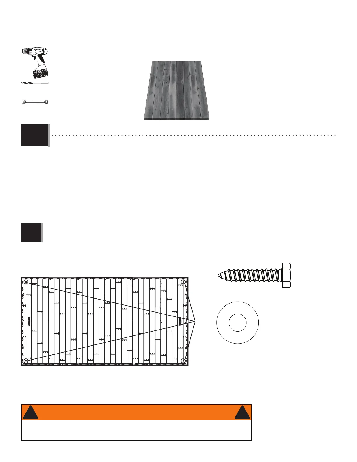 recommend using a drill, 5/16" (8 mm) drill bit, four (4) 3/8" x 1 1/2" (10 mm x 4 cm) Lag Screws and four (4) 3/8"