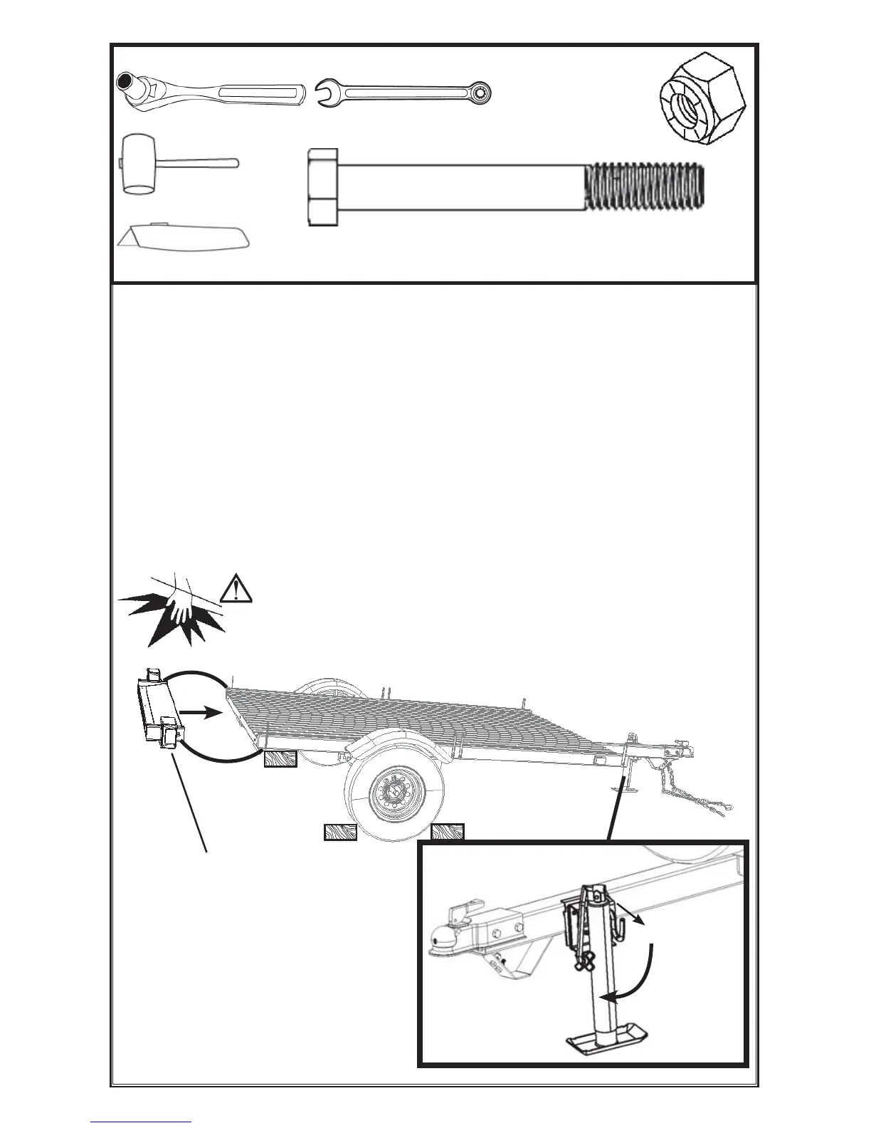 carefully remove all loose parts from the bed of the Trailer. Inventory all parts and