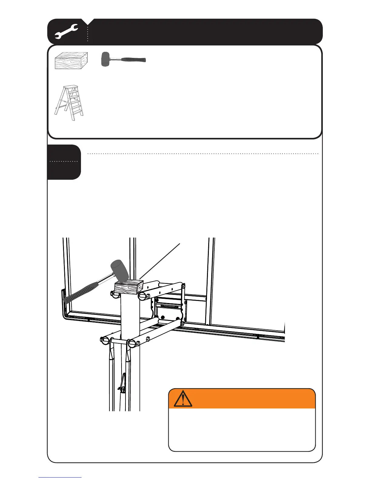 with a hammer to prevent scratching the powder coating.